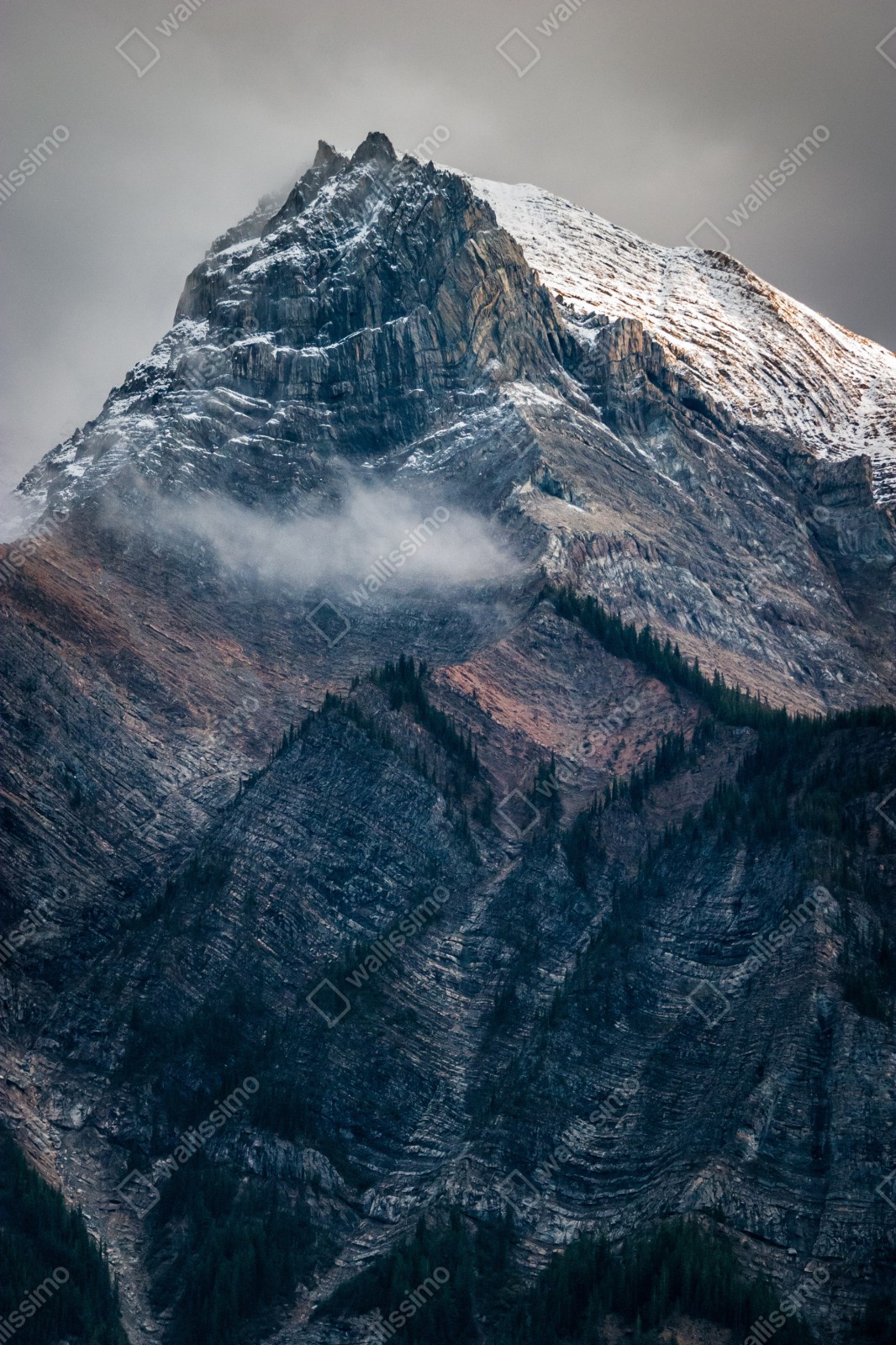 Naklejka repozycjonowalna Dramatyczny alpejski szczyt we mgle