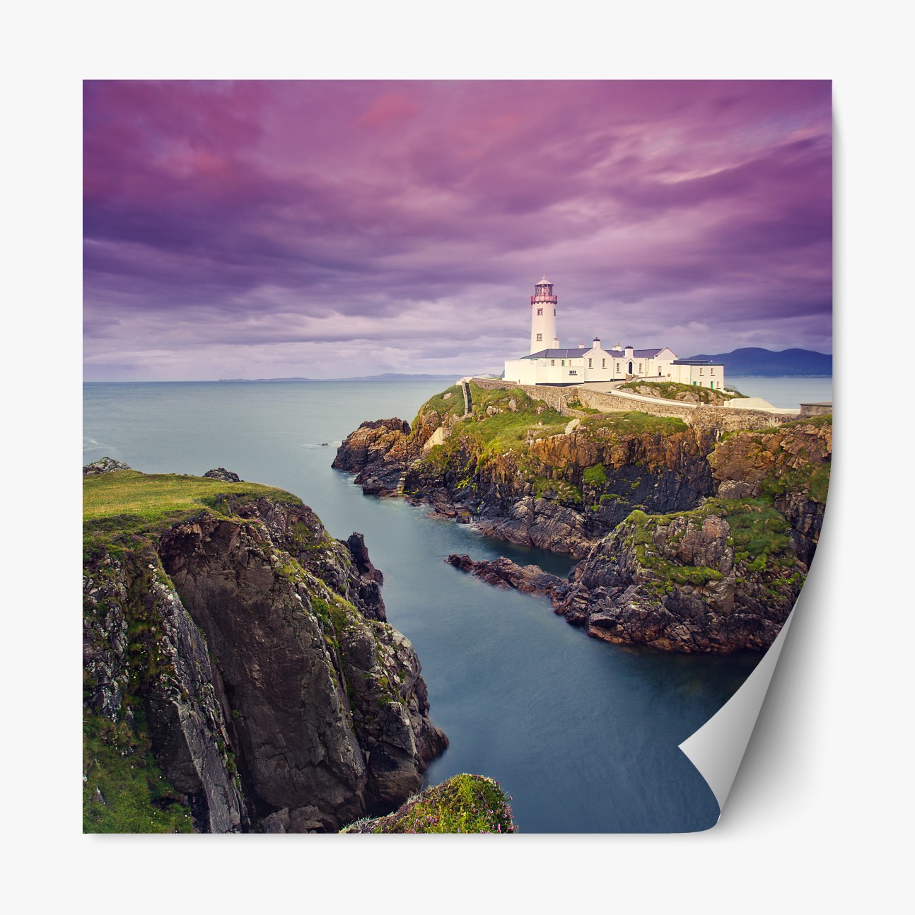 Naklejka repozycjonowalna Fioletowa latarnia nad skalistym wybrzeżem