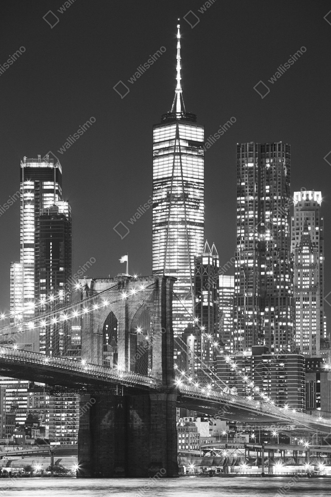 Naklejka repozycjonowalna Most Brooklyński i panorama Manhattanu nocą