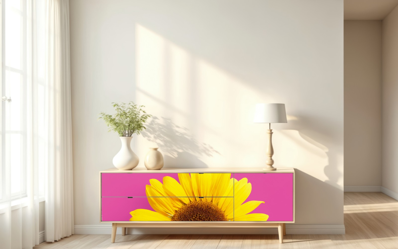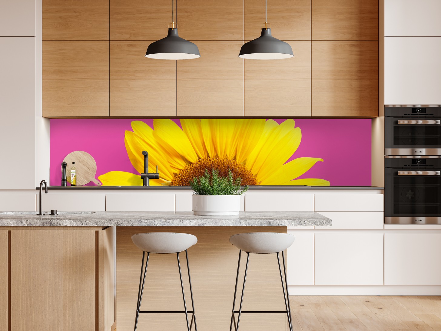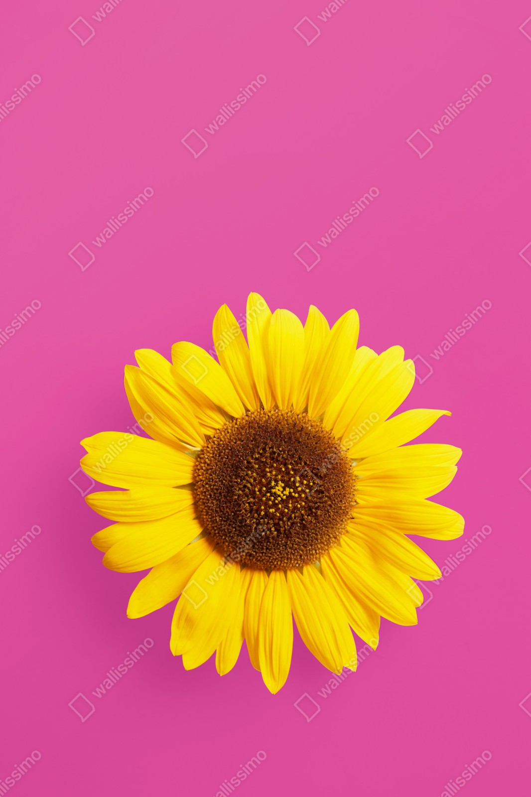 Naklejka repozycjonowalna Jasny słonecznik na różowym tle