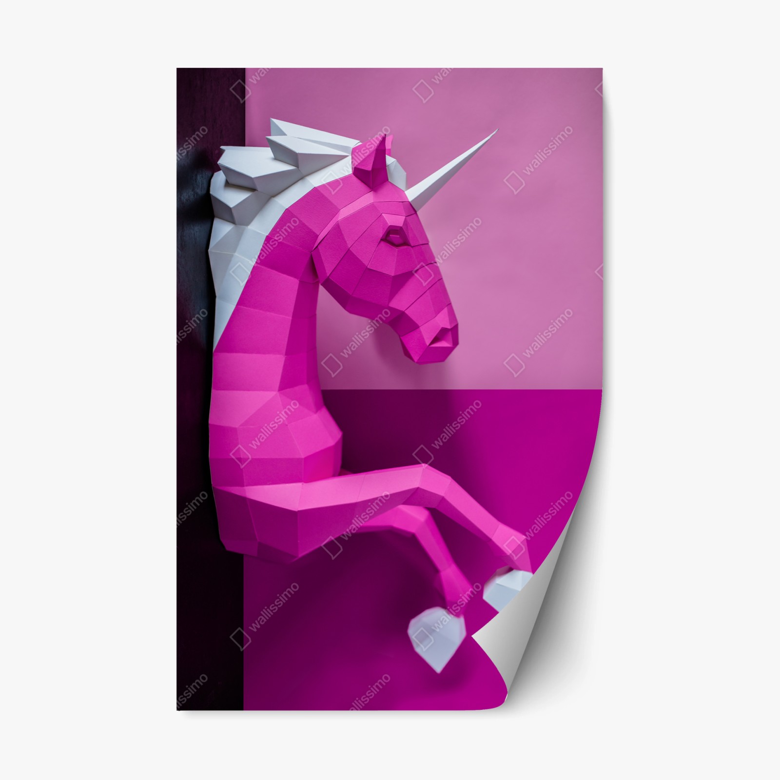 - pokój dziecięcy, geometryczny, dekoracja ścienna, jednorożec, nowoczesny, papierowa rzeźba, różowy jednorożec, papercraft, fantasy, 3d sztuka