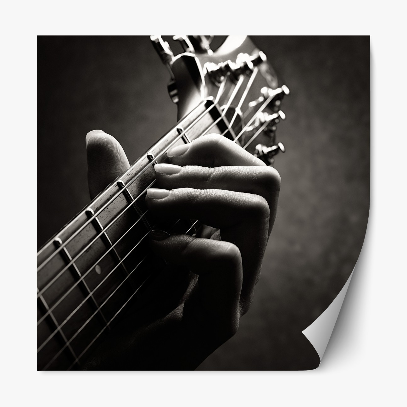 Naklejka repozycjonowalna Zbliżenie dłoni gitarzysty na gryfie