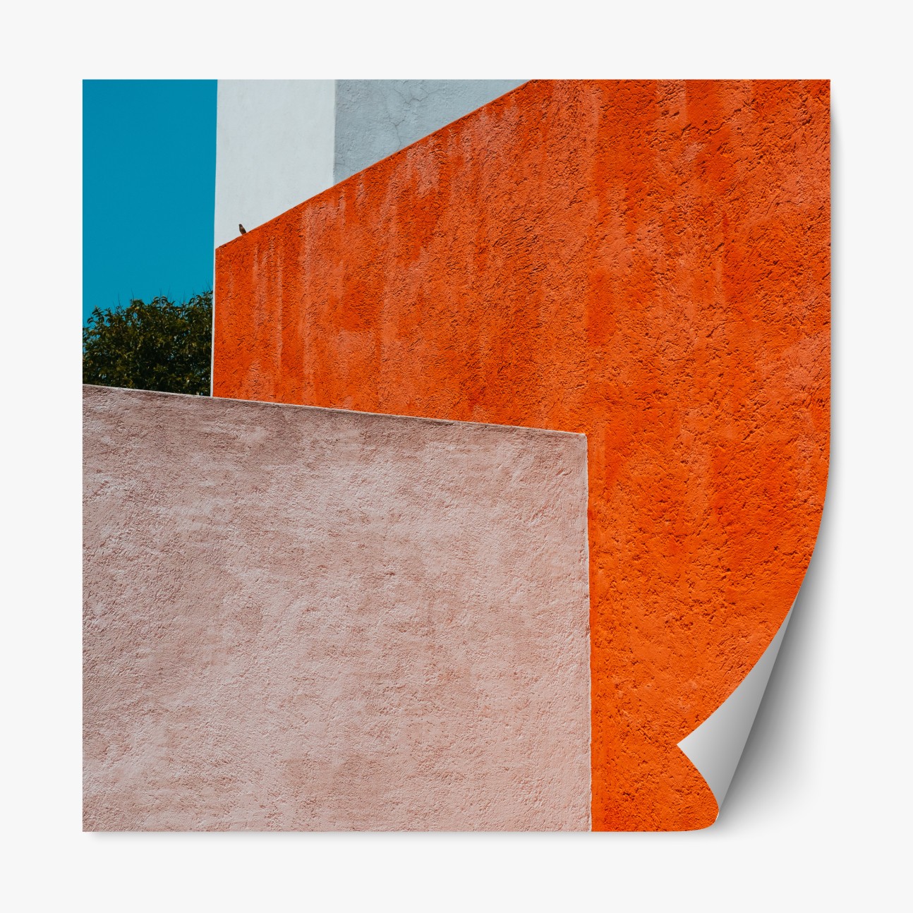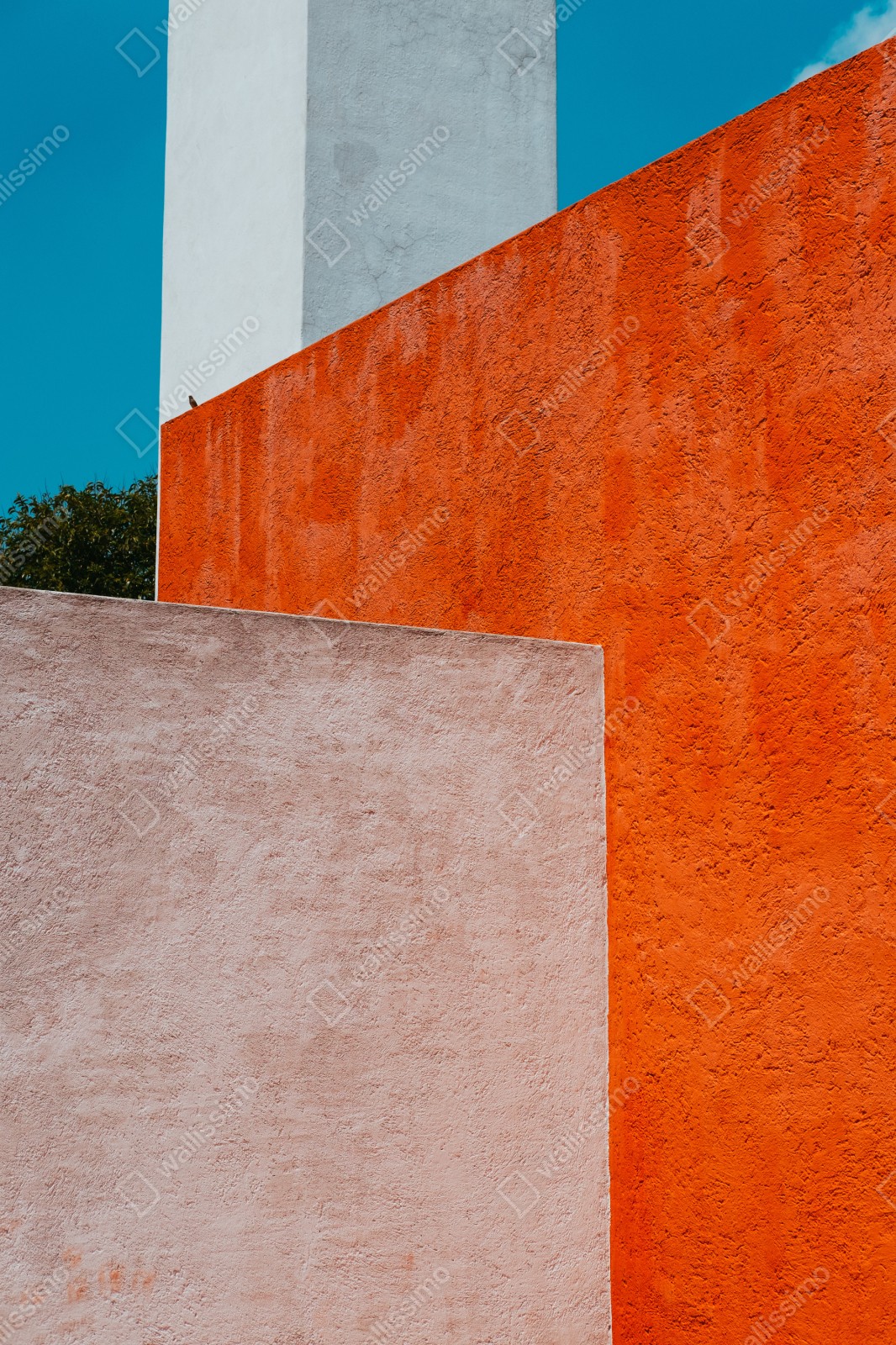 Naklejka repozycjonowalna Odważna geometryczna elewacja w pomarańczy i turkusie