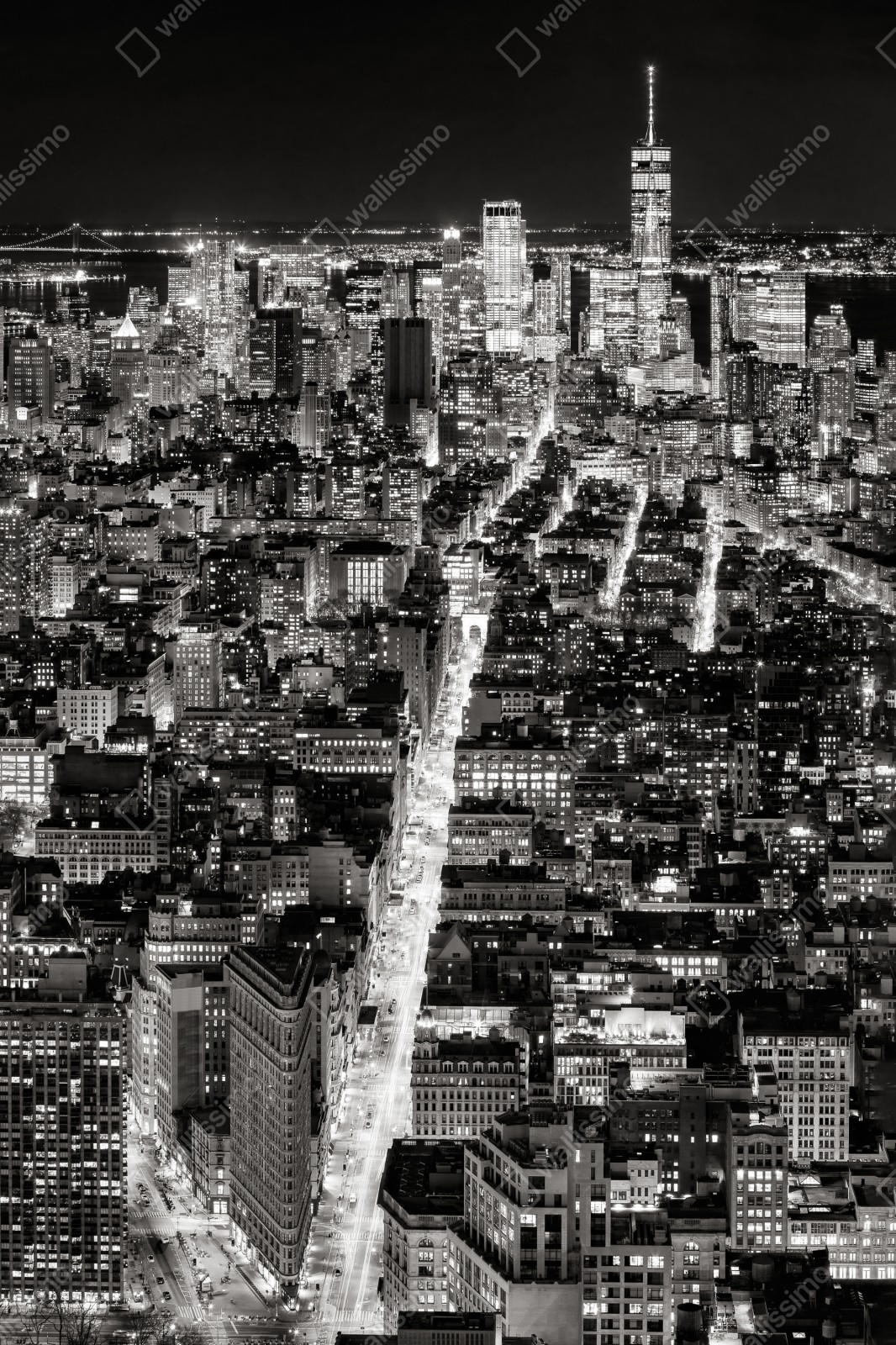 Naklejka repozycjonowalna Monochromatyczna panorama miasta nocą