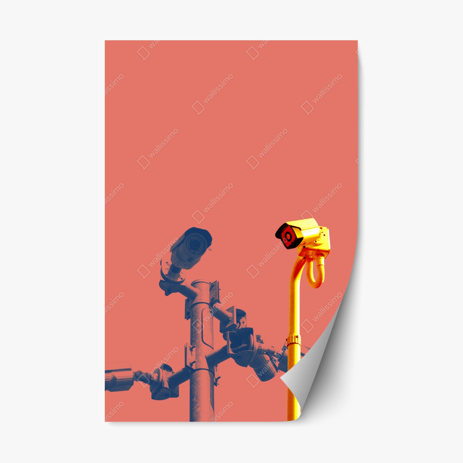 Naklejka repozycjonowalna Duotone kamery nadzoru na koralowym tle