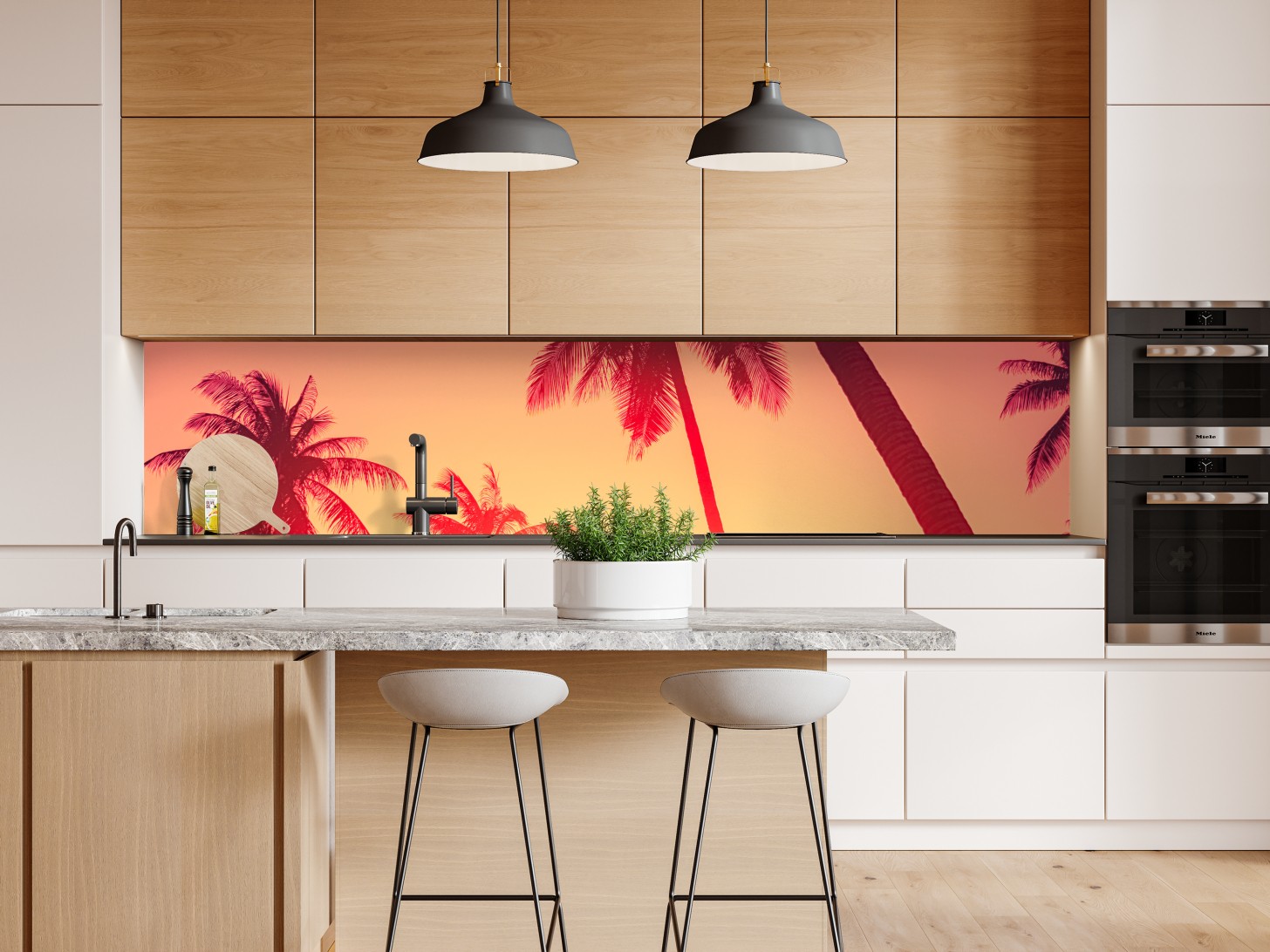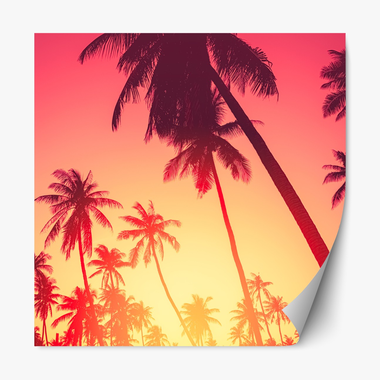 Naklejka repozycjonowalna Tropikalny zachód słońca z palmami