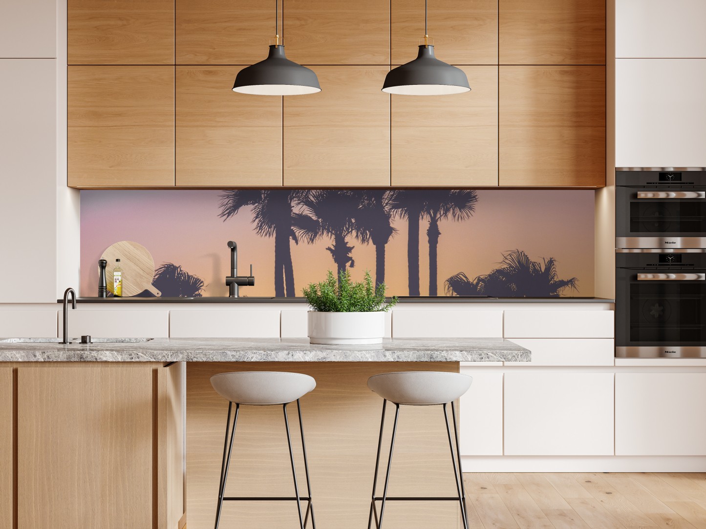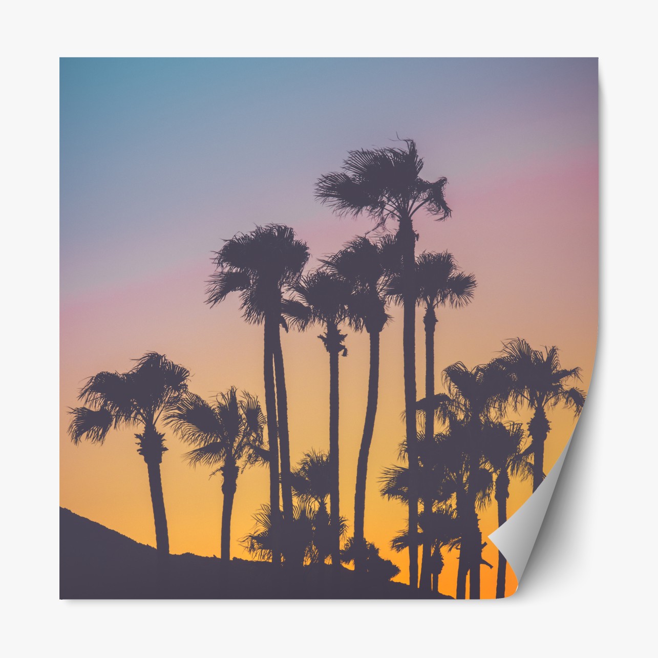 Naklejka repozycjonowalna Retro tropikalne palmy o zachodzie słońca