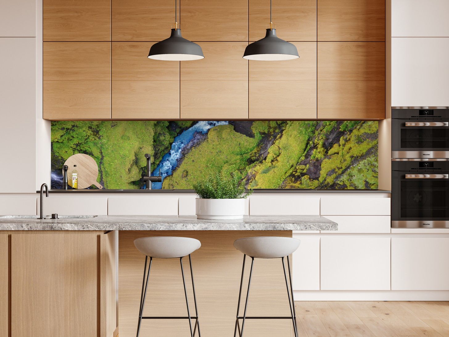 Naklejka repozycjonowalna Rzeka z lotu ptaka w mchem porośniętym wąwozie