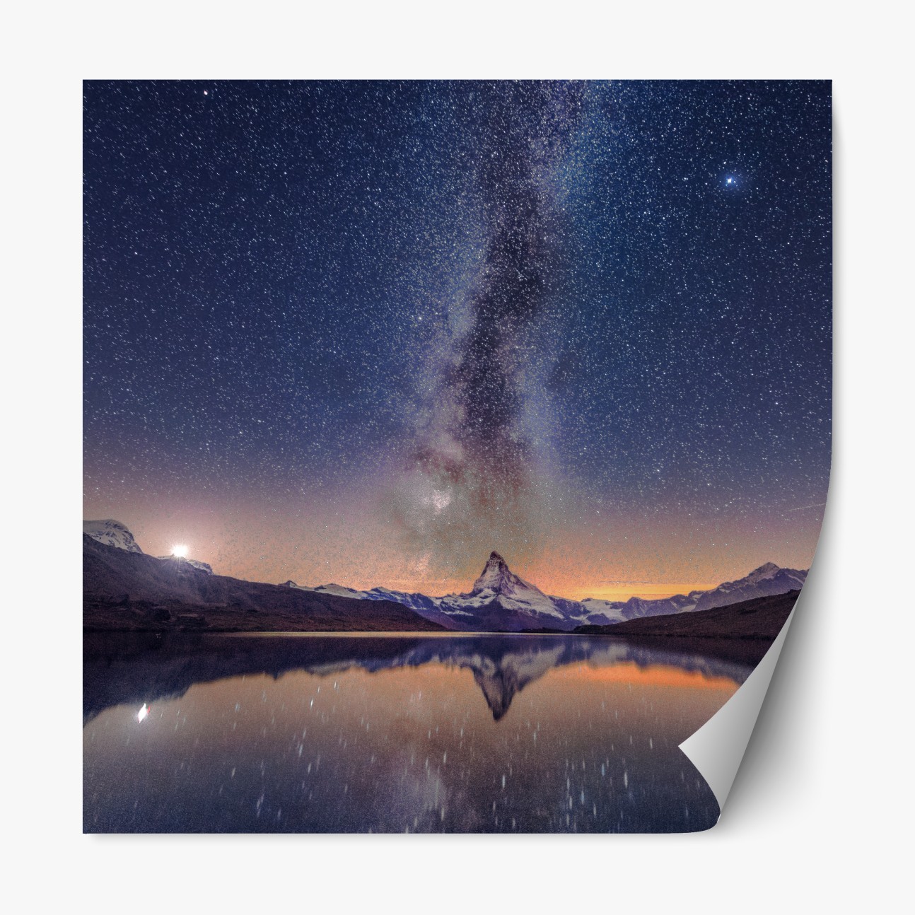 Naklejka repozycjonowalna Droga mleczna nad alpejskim szczytem odbita w jeziorze