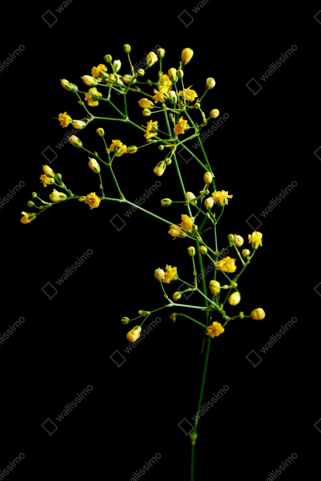Naklejka repozycjonowalna Delikatna żółta gipsówka na czarnym tle