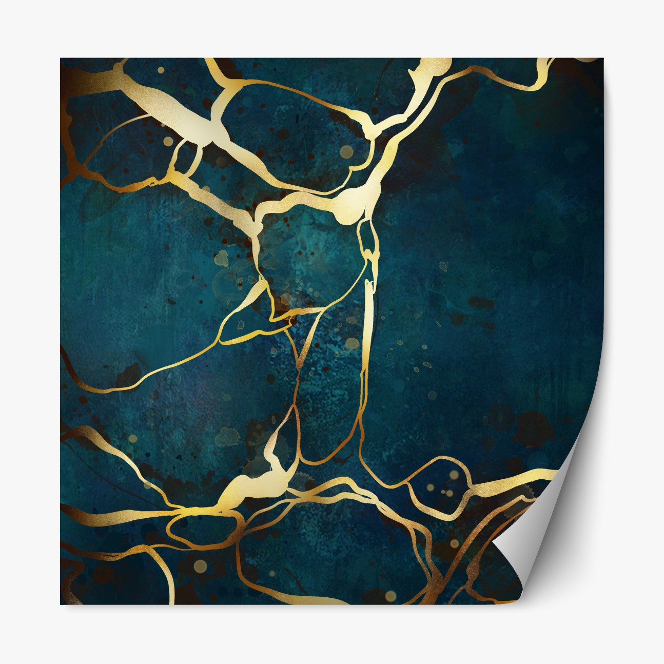 Naklejka repozycjonowalna Turkusowo-złota abstrakcja ze złotymi żyłami