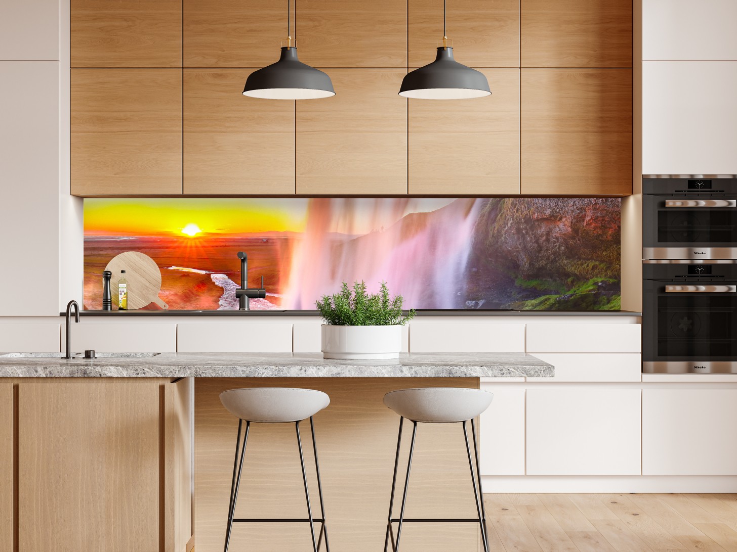 Naklejka repozycjonowalna Seljalandsfoss wodospad o zachodzie słońca