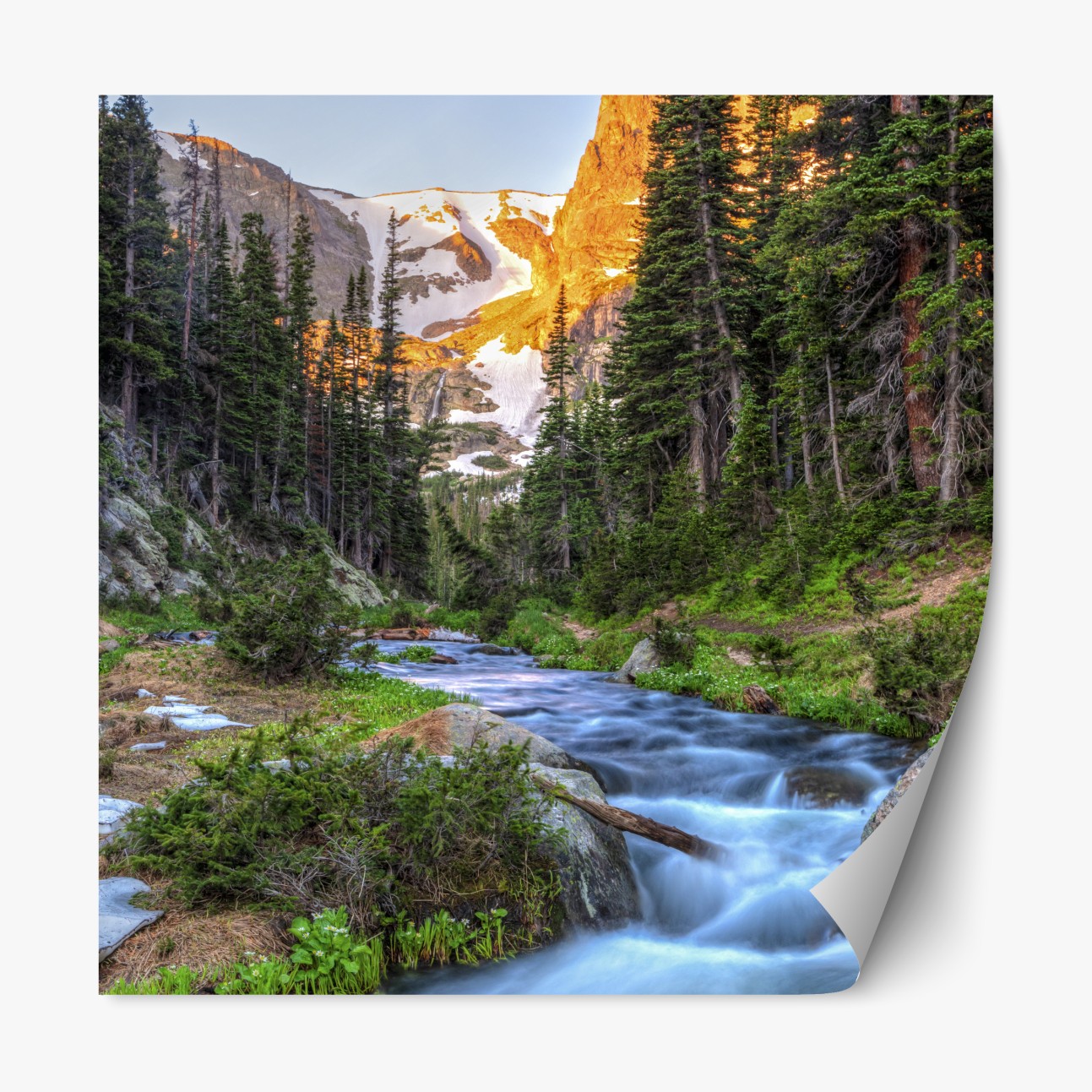 Naklejka repozycjonowalna Złoty szczyt nad alpejskim potokiem