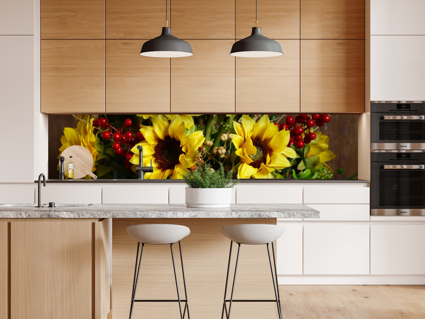 Naklejka repozycjonowalna Jesienny bukiet słoneczników na drewnianym tle