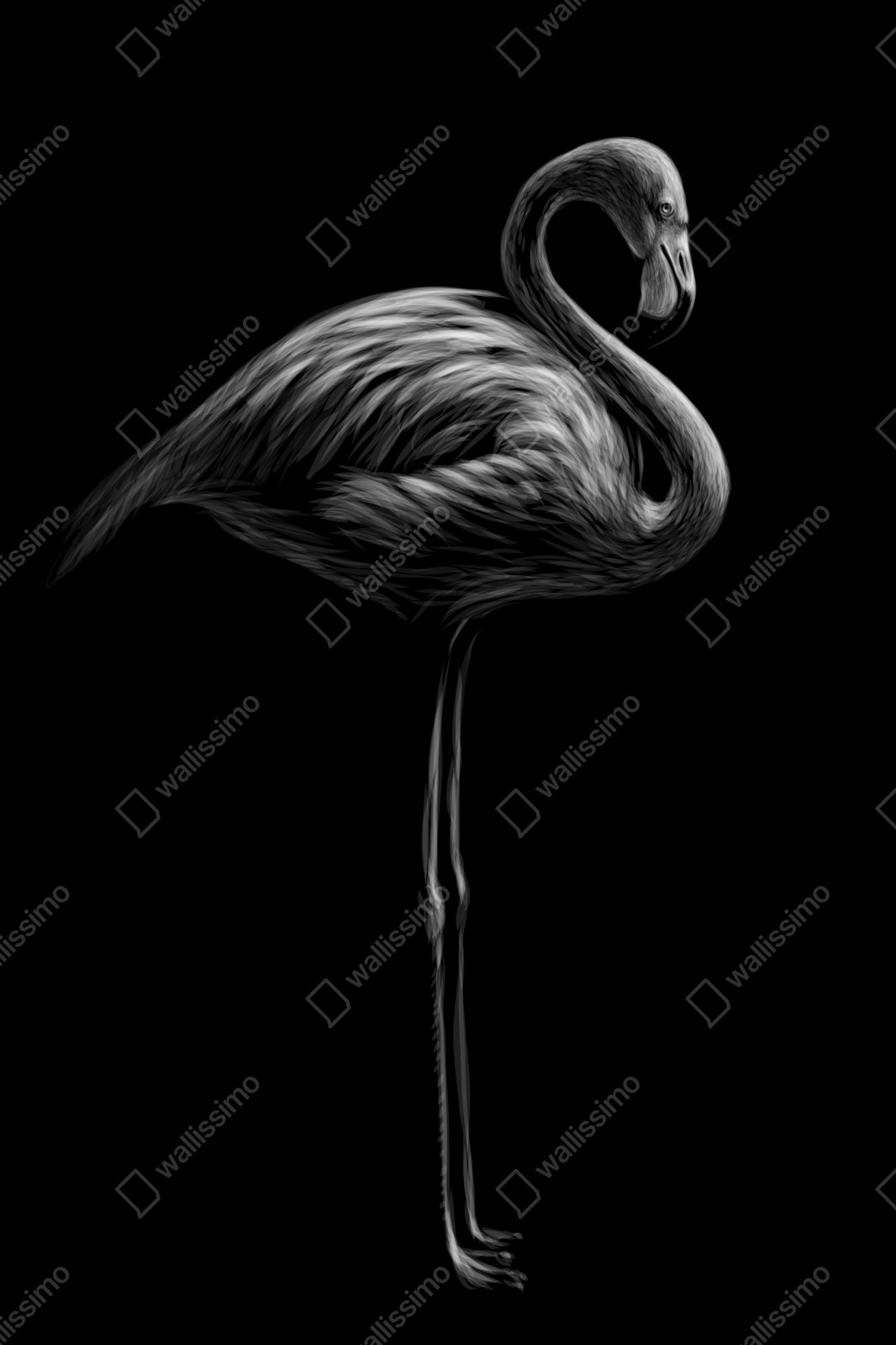 Naklejka repozycjonowalna Grafika flaminga w odcieniach szarości