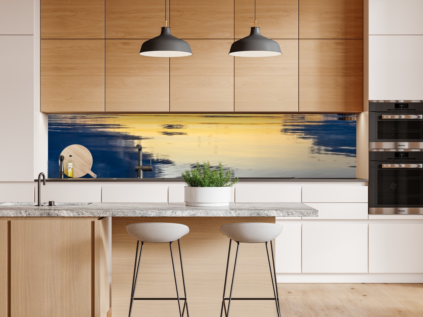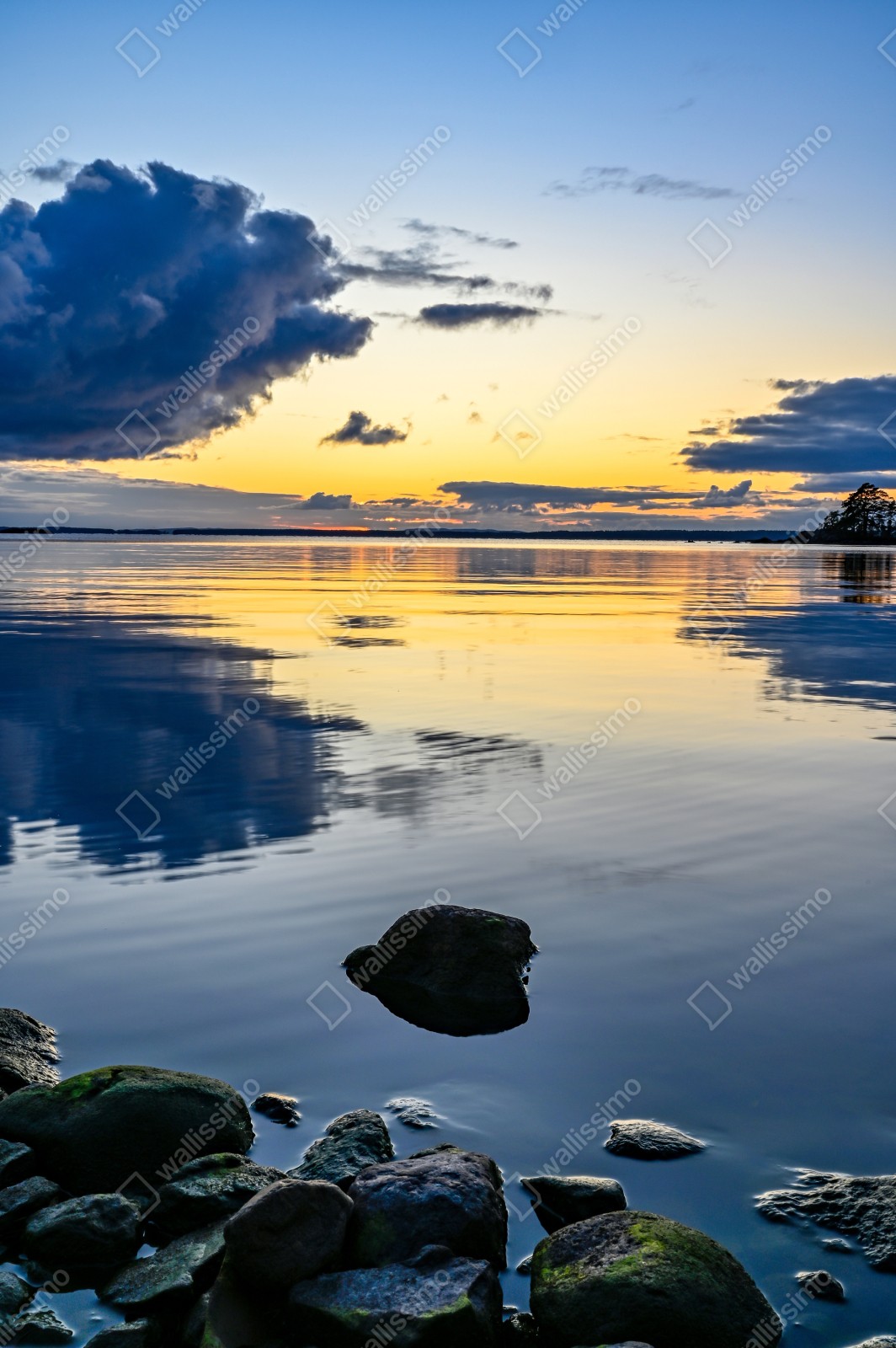 Naklejka repozycjonowalna Spokojne nadmorskie odbicie zachodu słońca