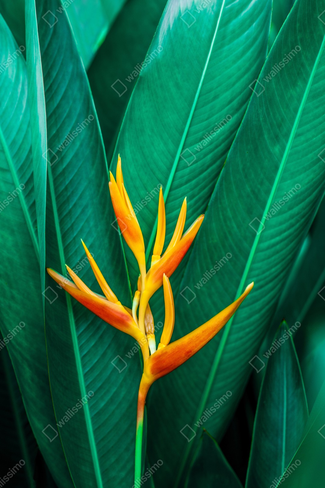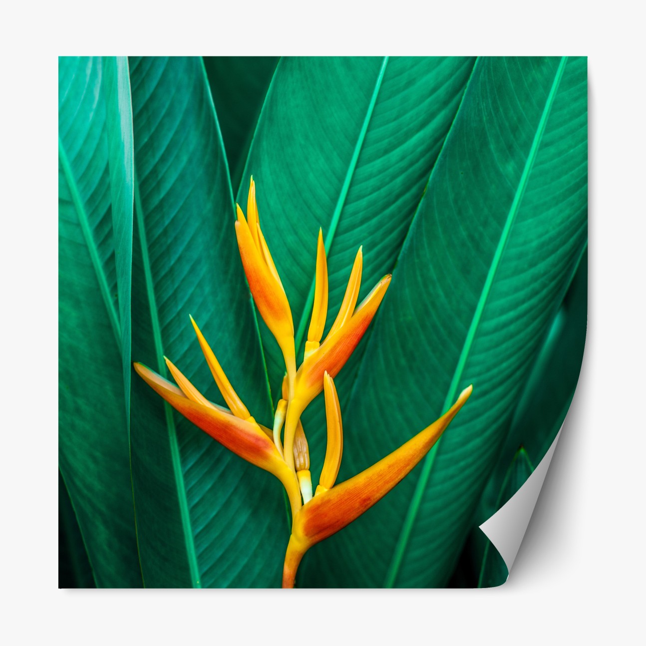 Naklejka repozycjonowalna Intensywny tropikalny ptak rajski na zielonych liściach