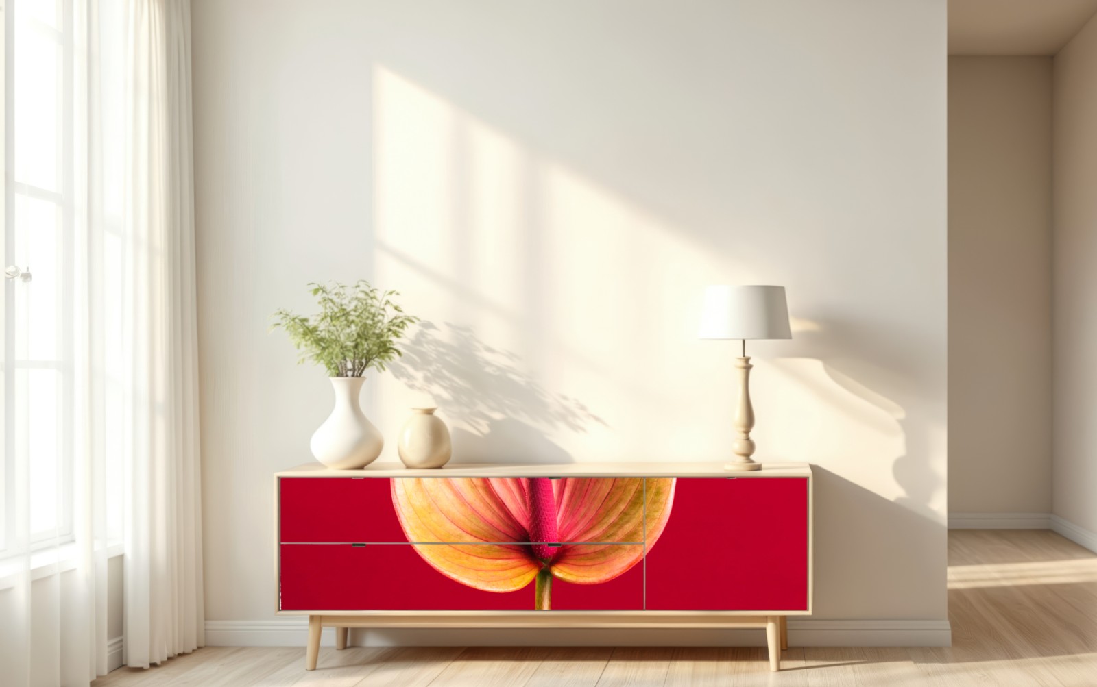 Naklejka repozycjonowalna Eleganckie anturium na czerwonym tle