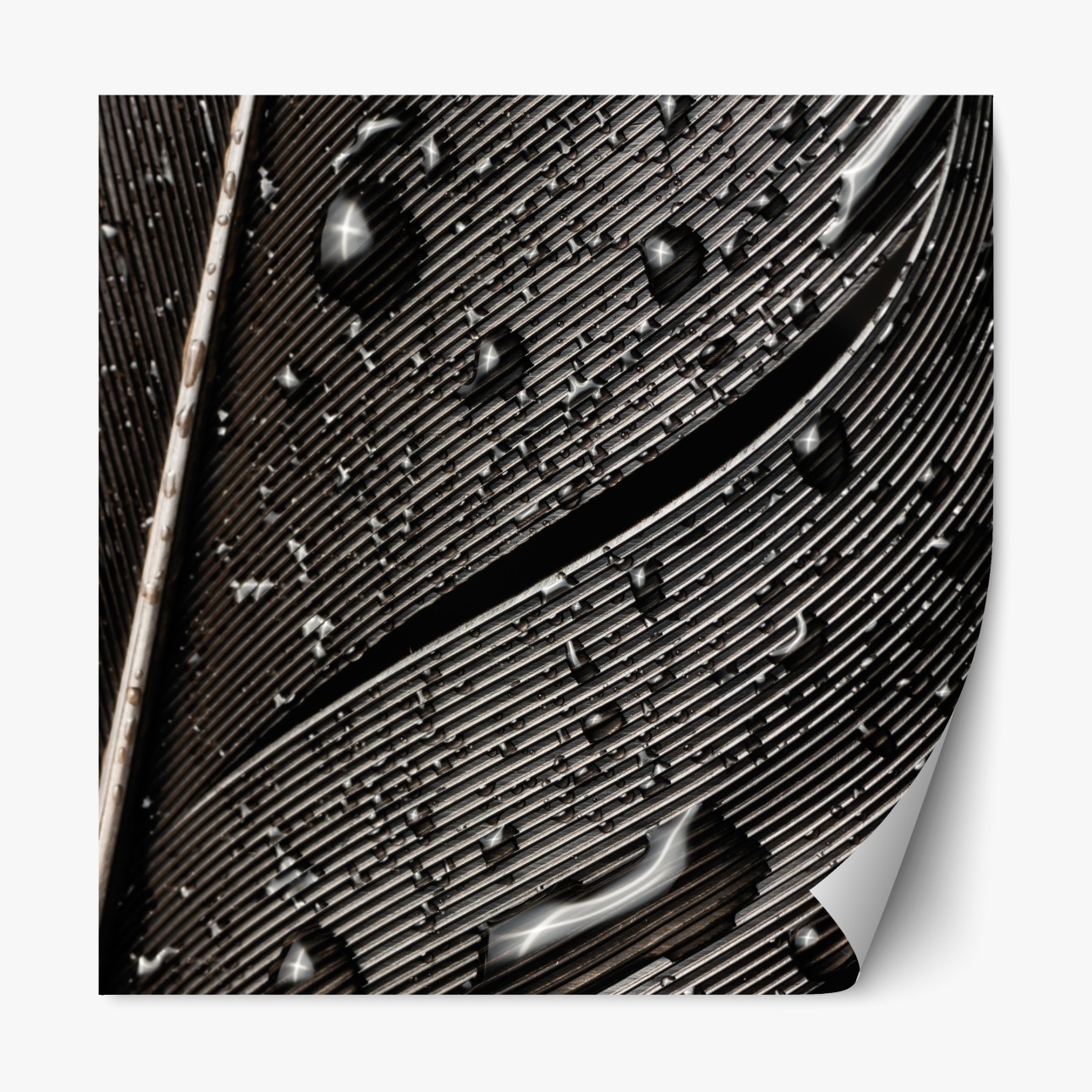 Naklejka repozycjonowalna Czarno-białe pióro z kroplami wody