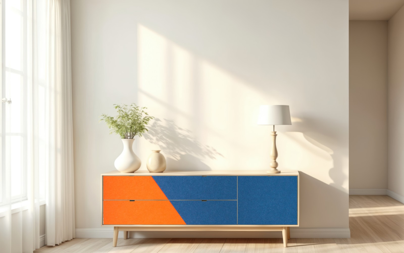 Naklejka repozycjonowalna Odważna kompozycja geometryczna w niebieskim i pomarańczowym