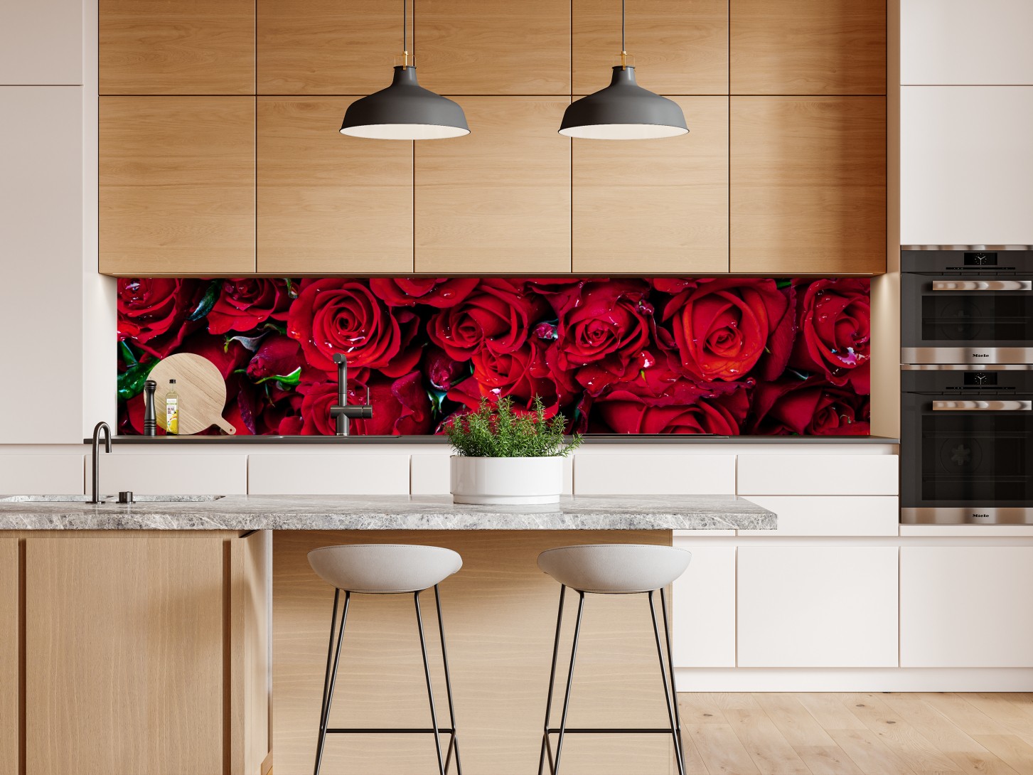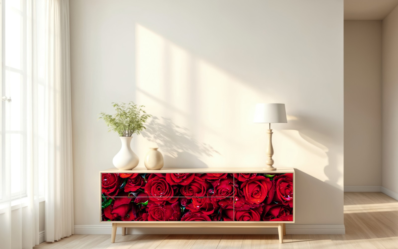 Naklejka repozycjonowalna Gęsta ściana czerwonych róż