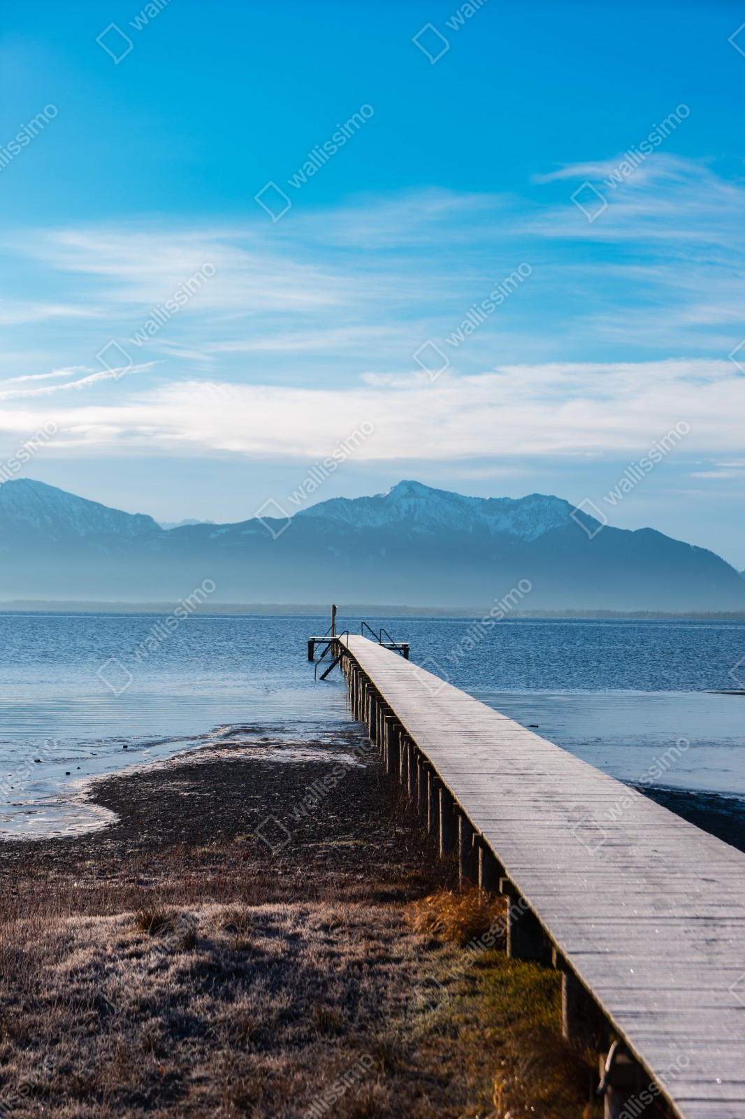 Naklejka repozycjonowalna Mglisty pomost nad jeziorem o świcie