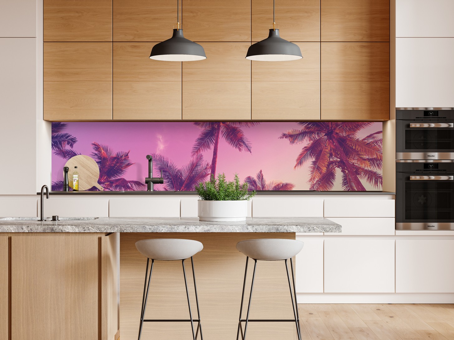 Naklejka repozycjonowalna Tropikalne palmy o zachodzie słońca