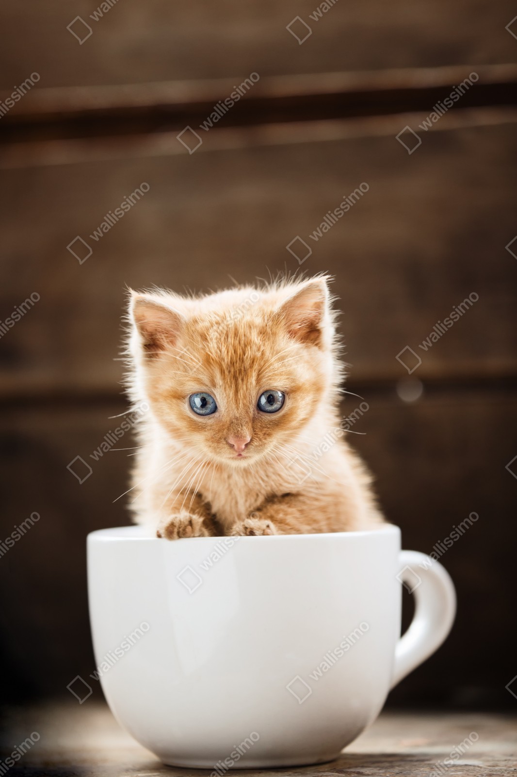 Naklejka repozycjonowalna Rudy kociak w filiżance