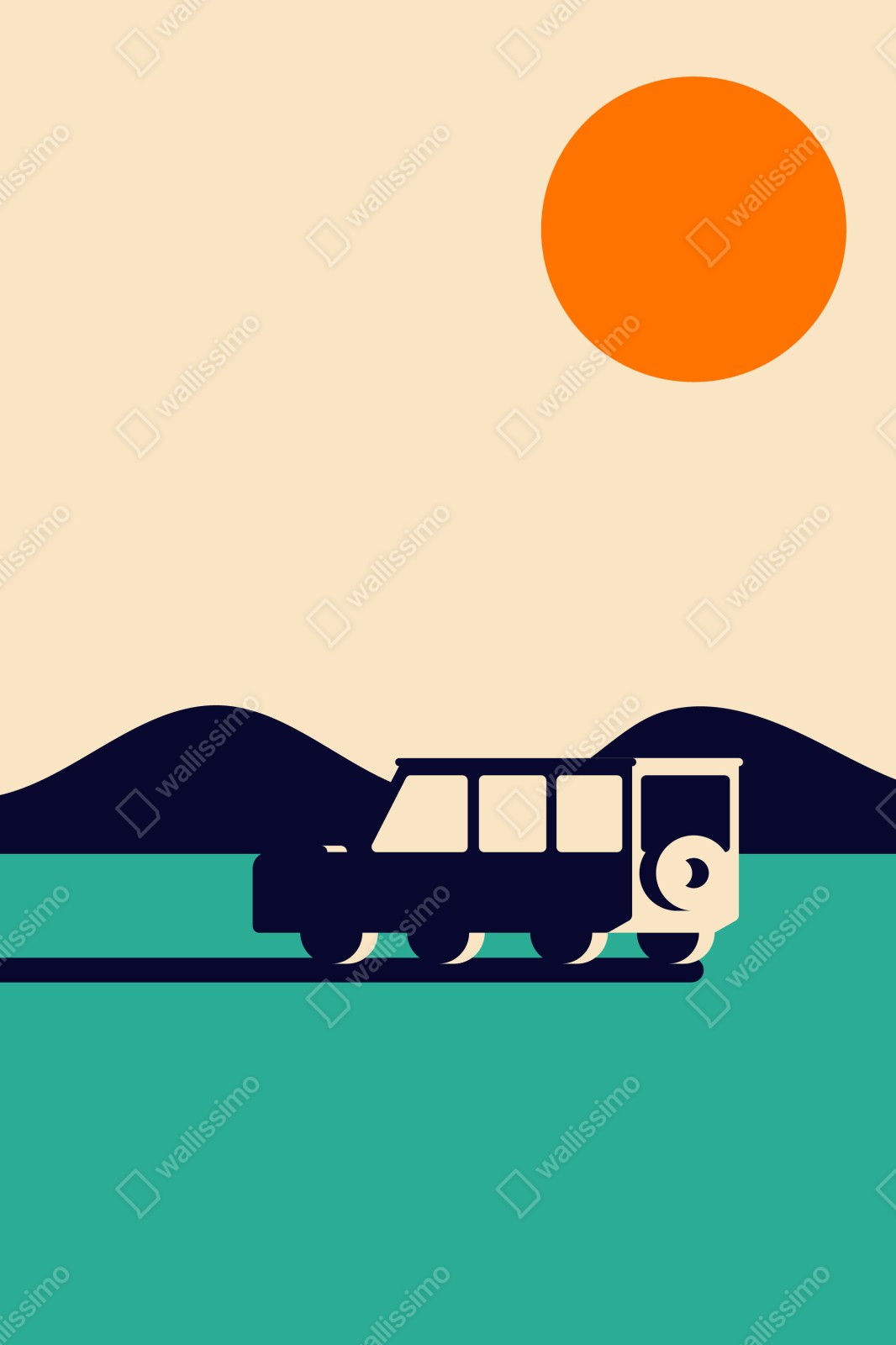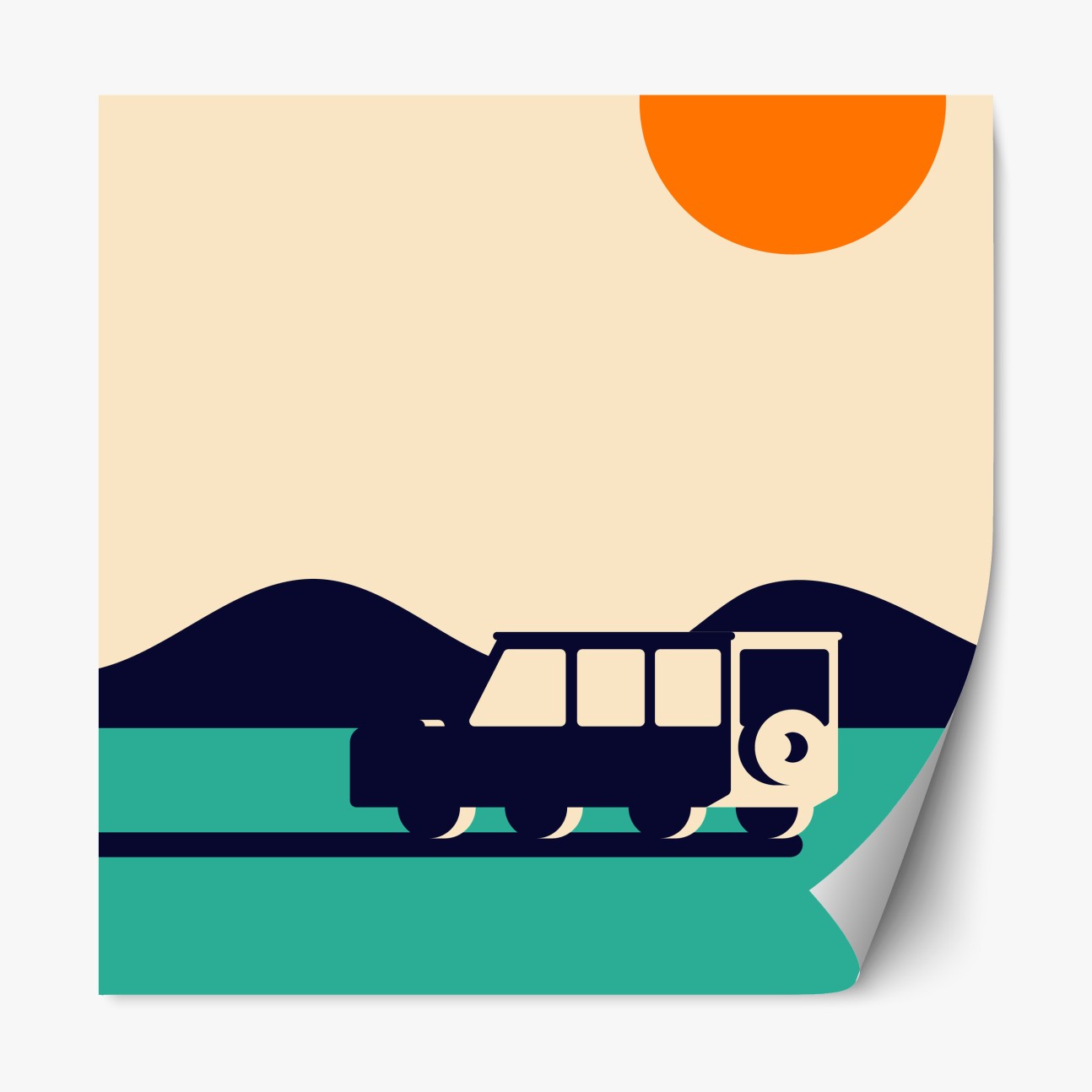 Naklejka repozycjonowalna Geometryczny górski krajobraz z kamperem