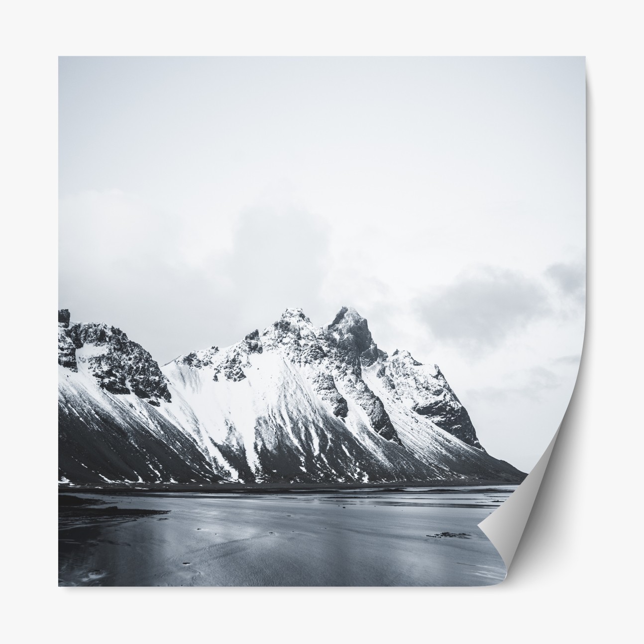 Naklejka repozycjonowalna Spokojny ośnieżony krajobraz górski nad morzem