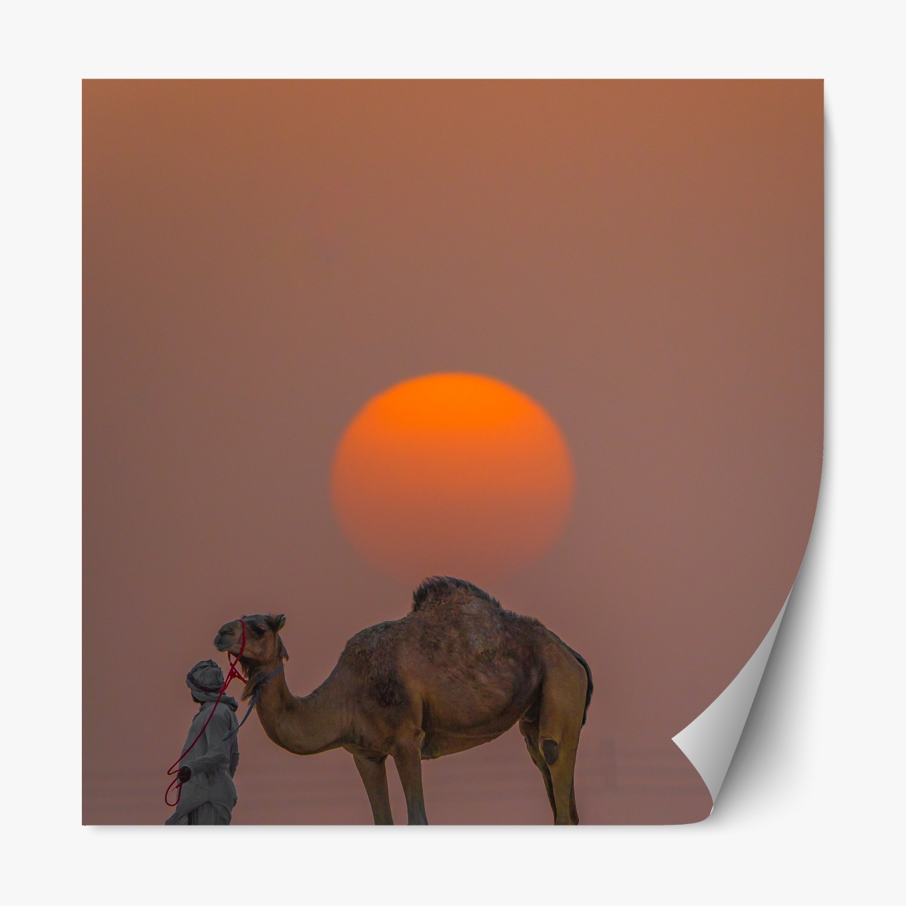 Naklejka repozycjonowalna Wielbłąd na tle zachodu słońca na pustyni