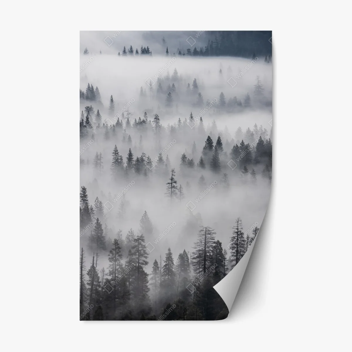 Naklejka repozycjonowalna Mglisty las sosnowy