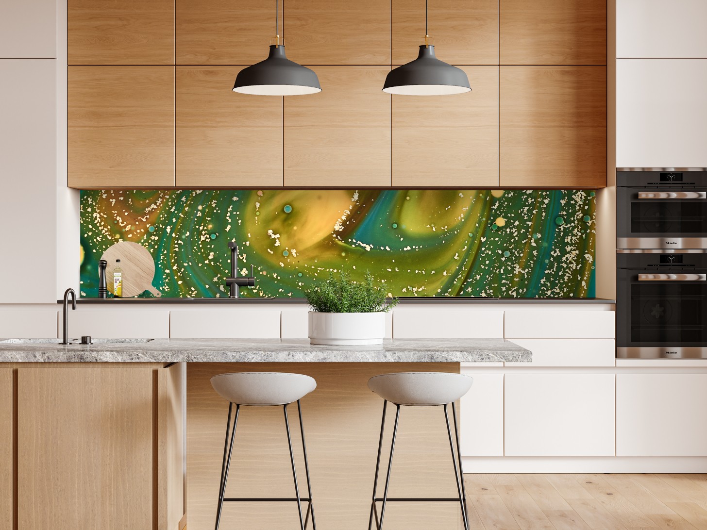 Naklejka repozycjonowalna Zielono-złota płynna marmurkowa grafika
