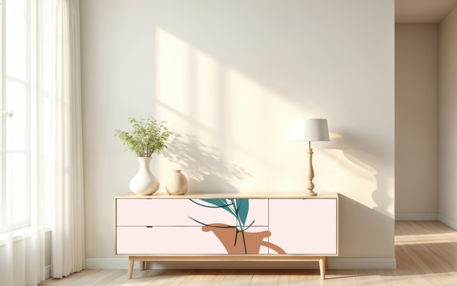 Naklejka repozycjonowalna Pastelowa botaniczna waza z liśćmi