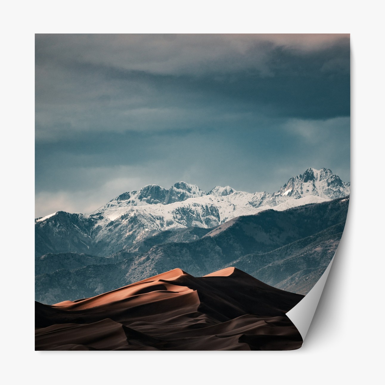 Naklejka repozycjonowalna Wydmy pustyni pod zaśnieżonymi szczytami