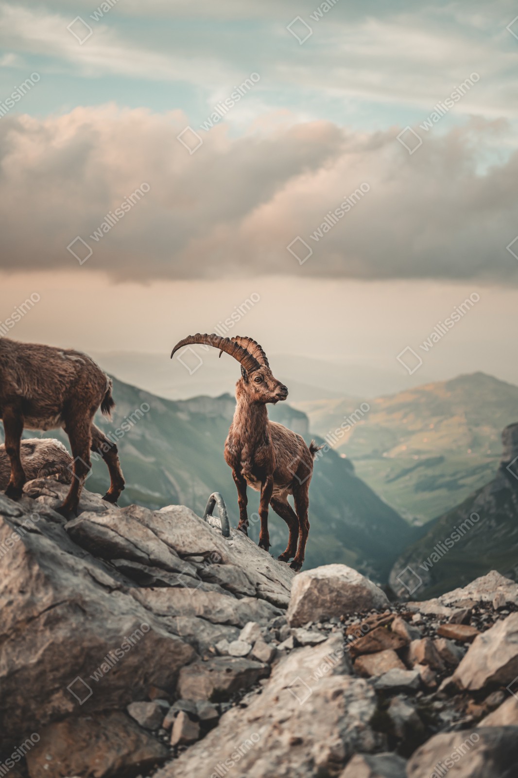 Naklejka repozycjonowalna Kozica alpejska na skalistym grzbiecie