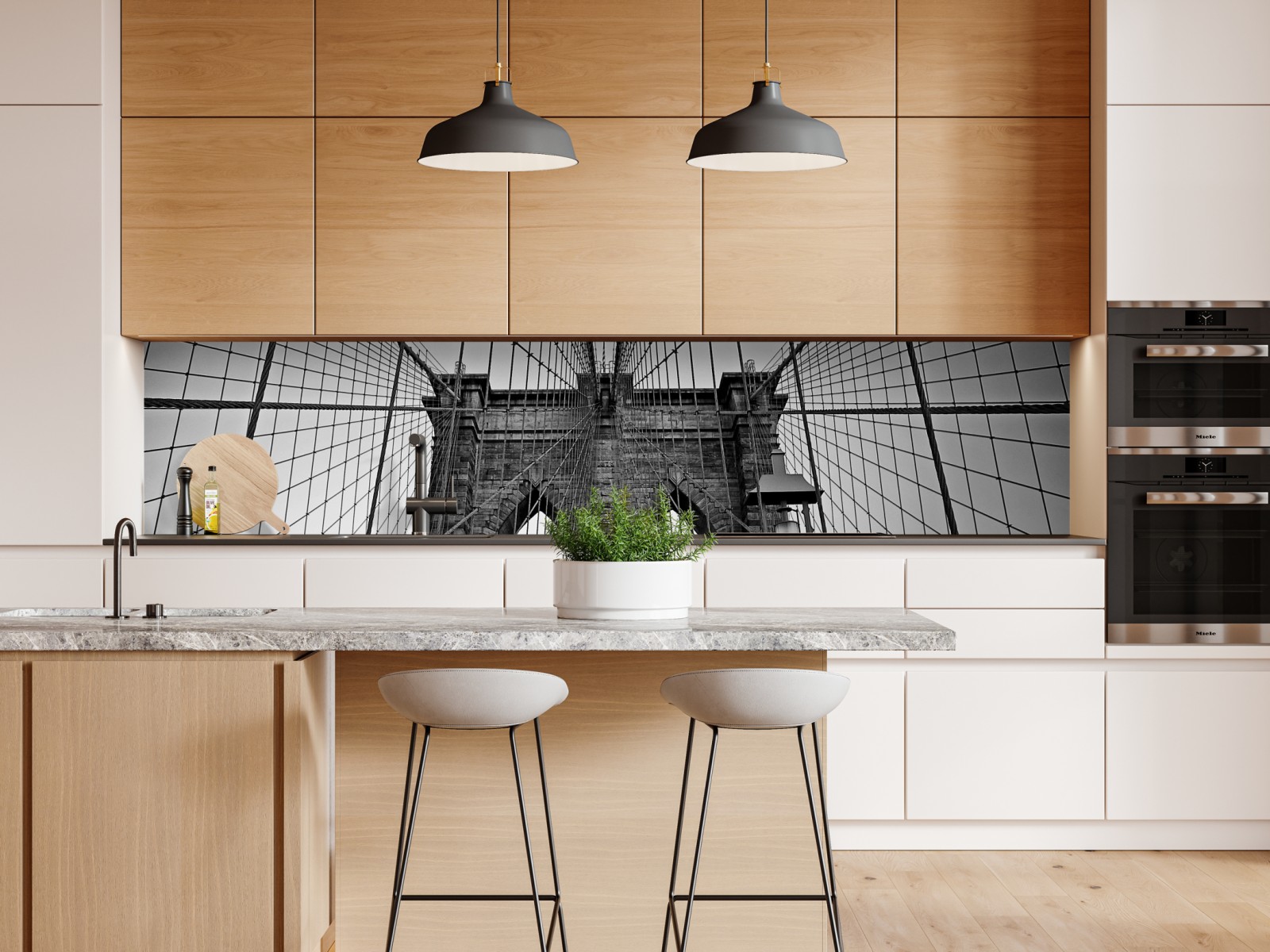 Naklejka repozycjonowalna Symetryczny most wiszący w czerni i bieli