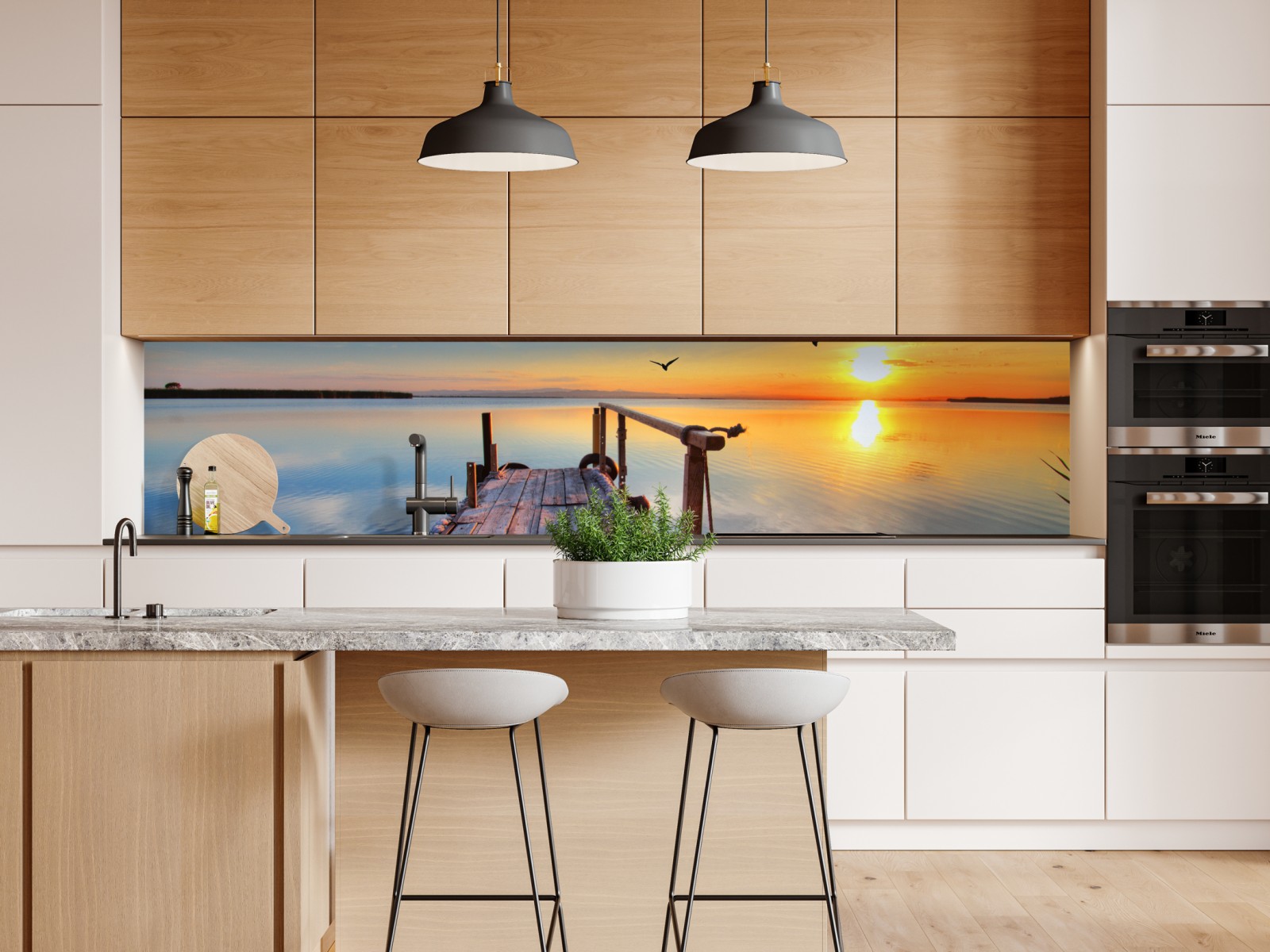 Naklejka repozycjonowalna Zachód słońca przy drewnianym pomoście