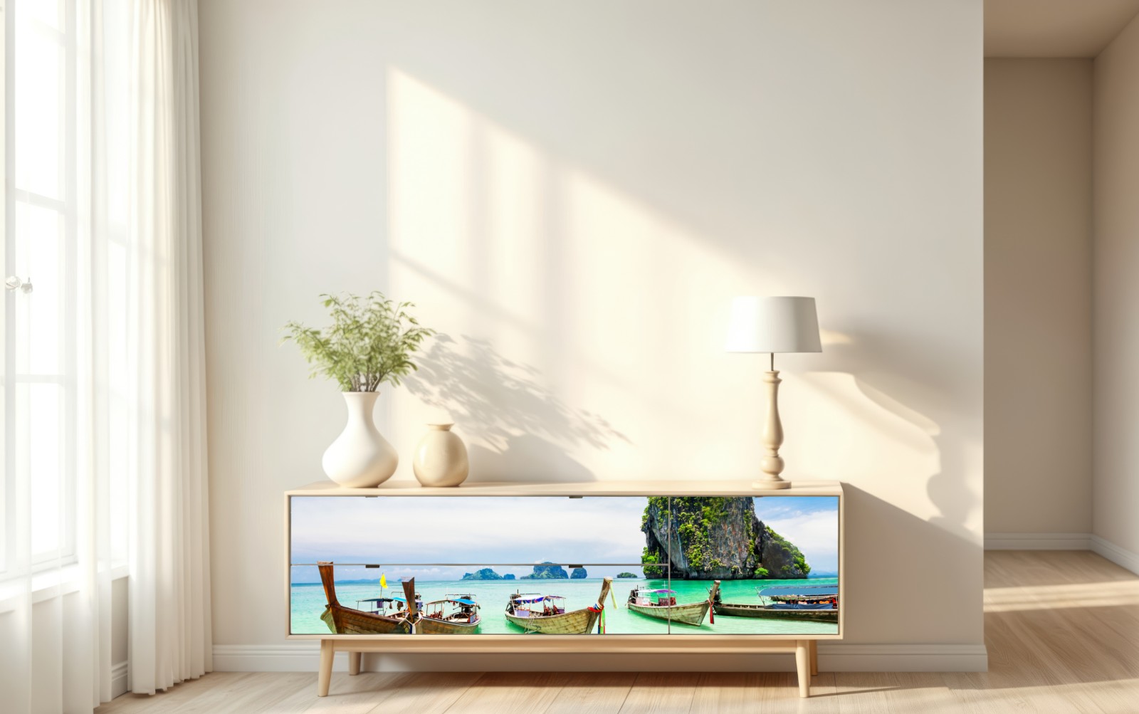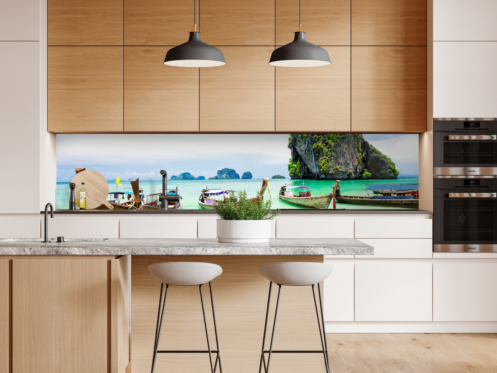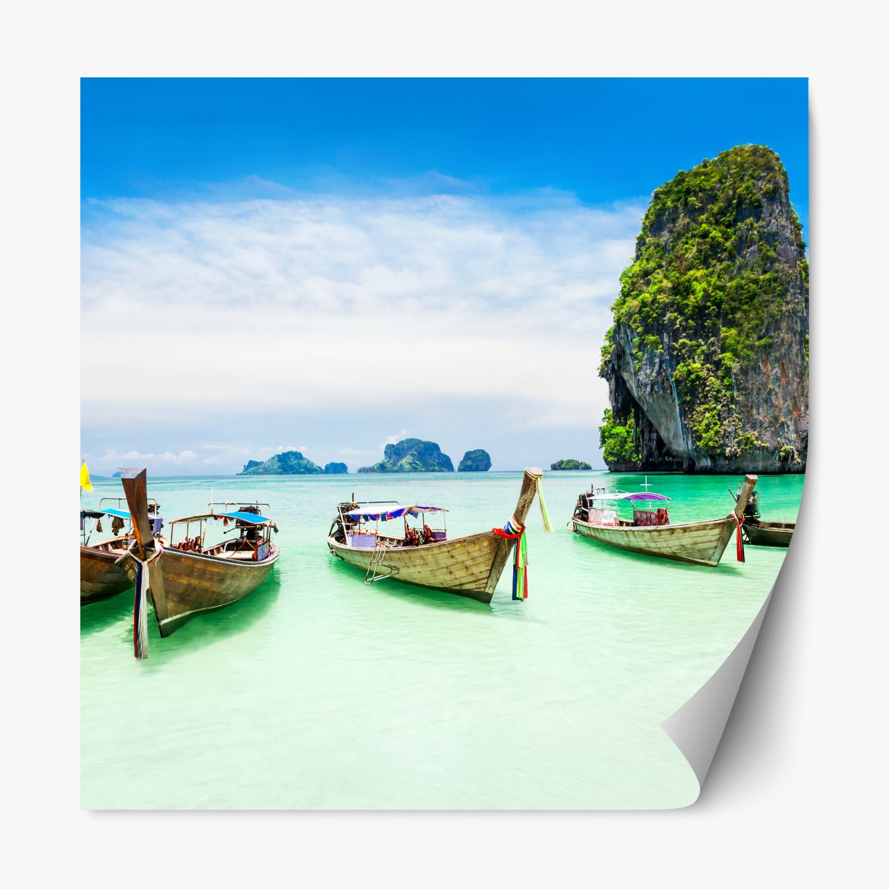 Naklejka repozycjonowalna Tropikalne łodzie longtail na turkusowej plaży
