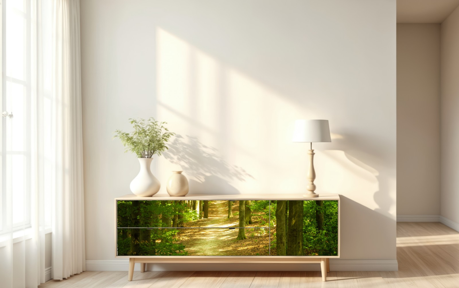 Naklejka repozycjonowalna Słoneczna leśna ścieżka