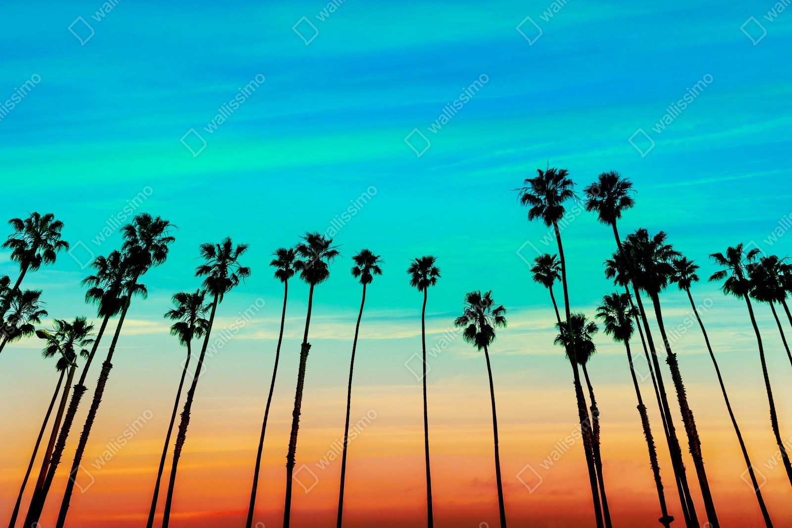 Naklejka repozycjonowalna Palmy o zachodzie słońca w Kalifornii