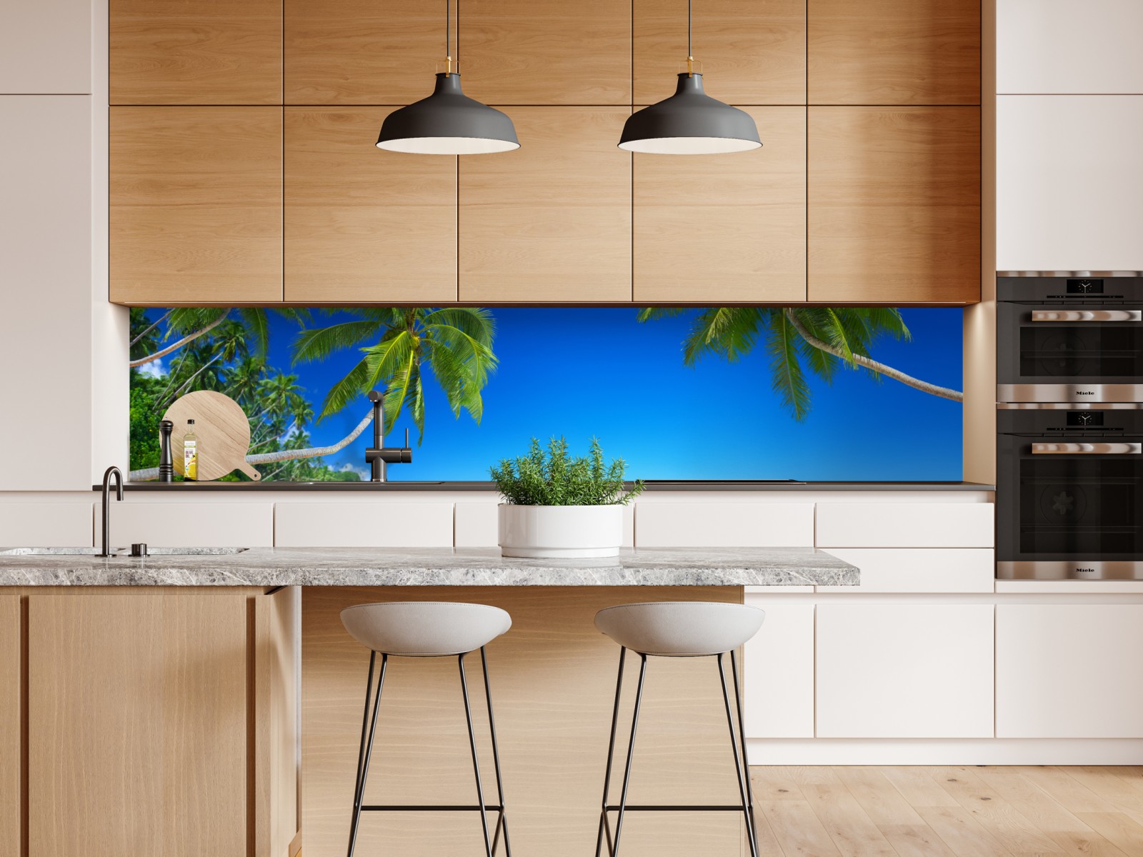 Naklejka repozycjonowalna Tropikalna plaża z palmami