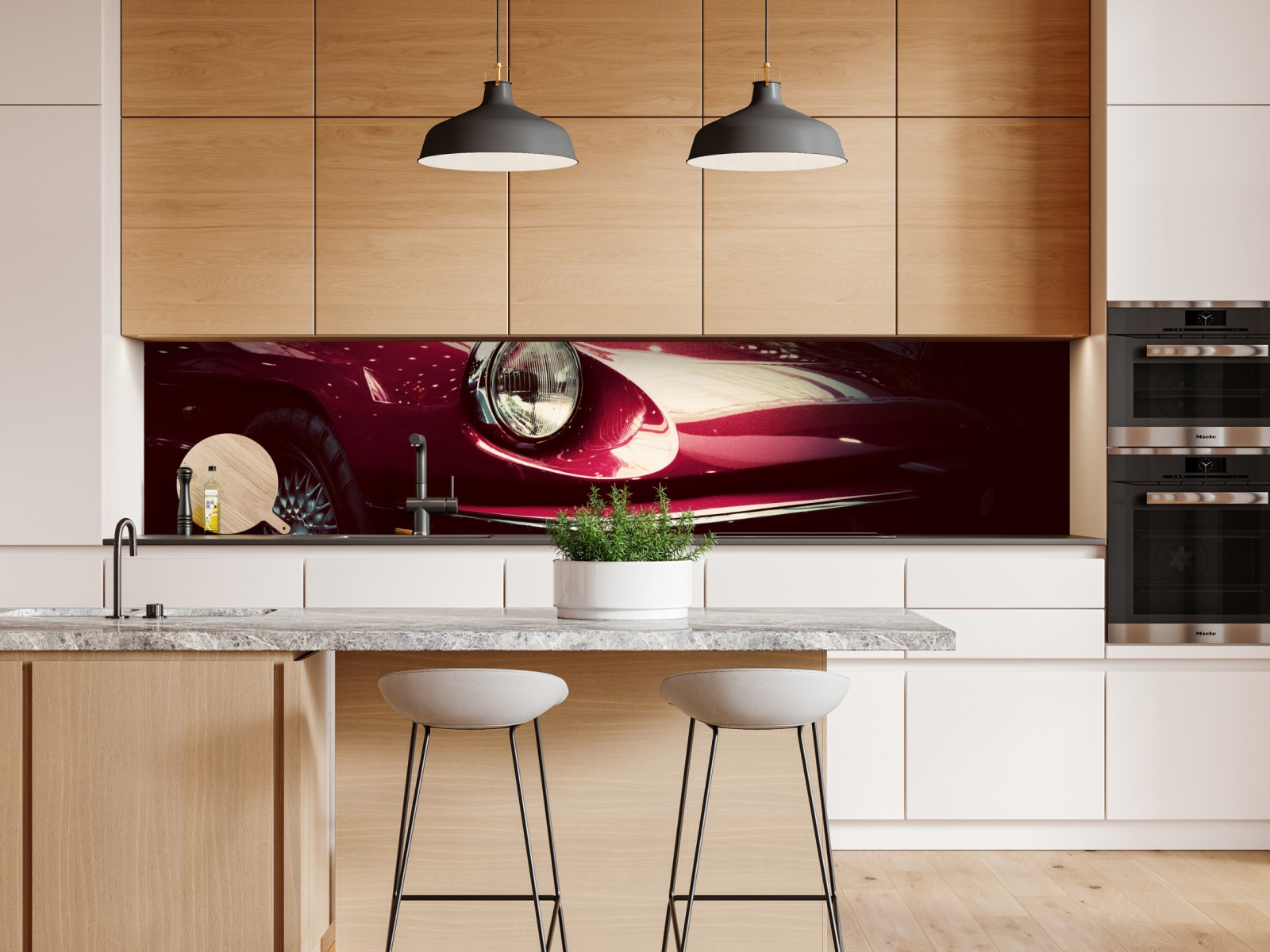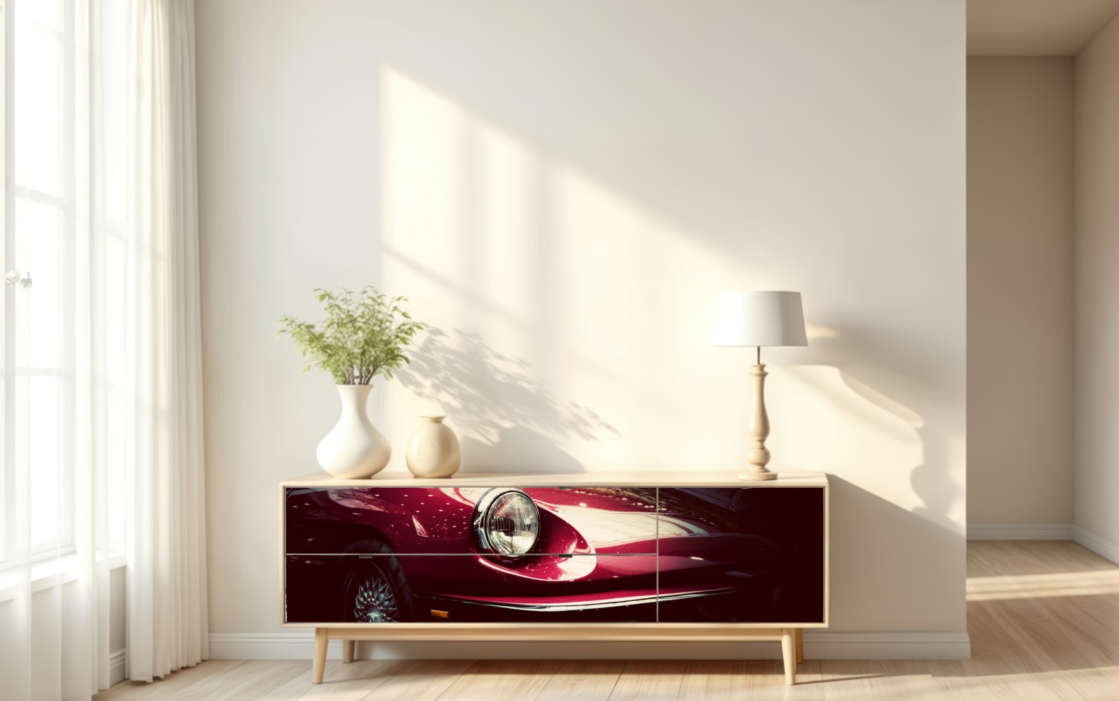 Naklejka repozycjonowalna Zbliżenie klasycznego czerwonego samochodu sportowego