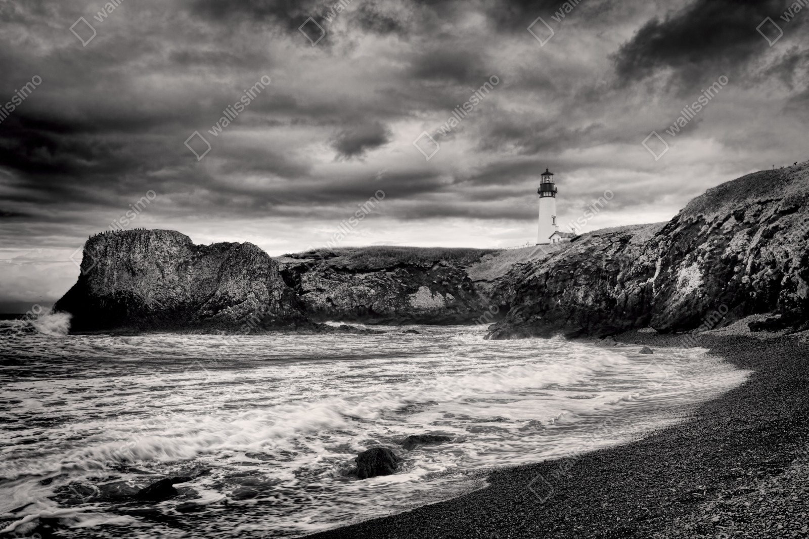Naklejka repozycjonowalna Latarnia morska Yaquina Bay na burzliwym wybrzeżu