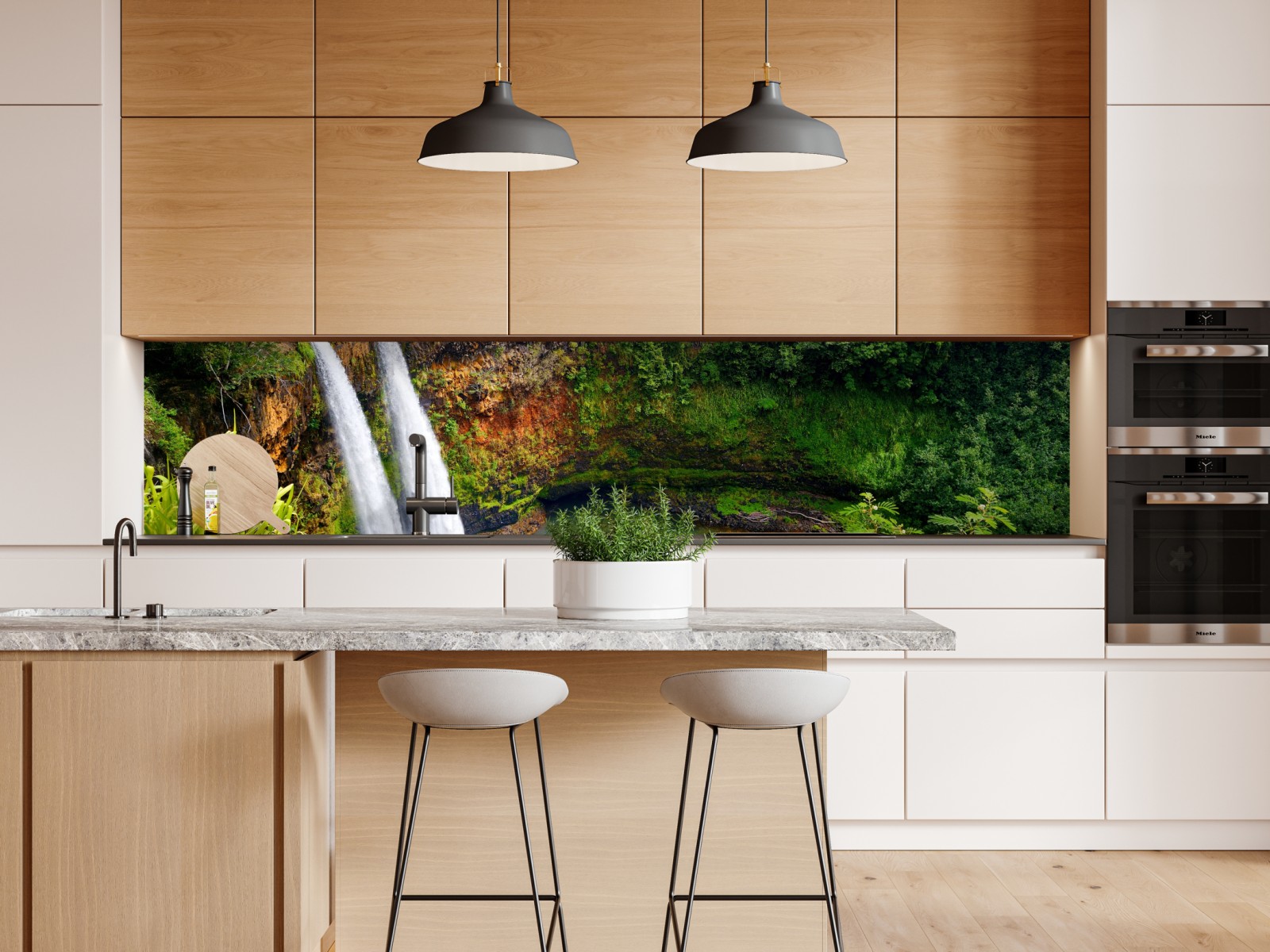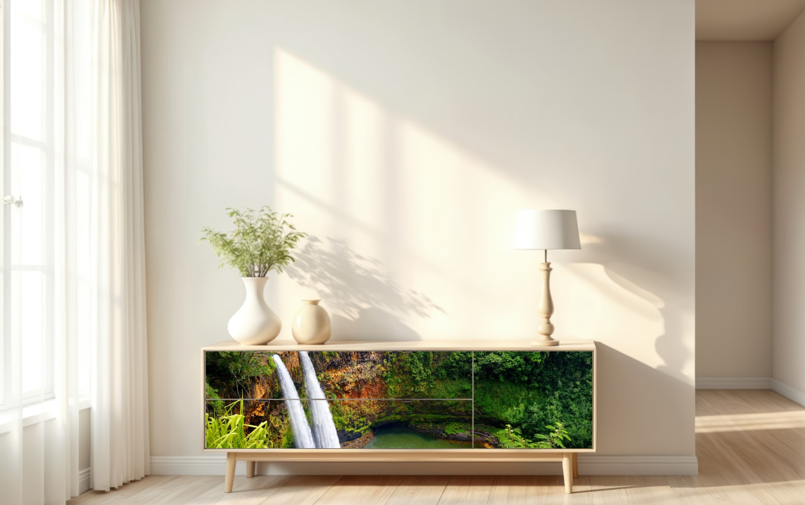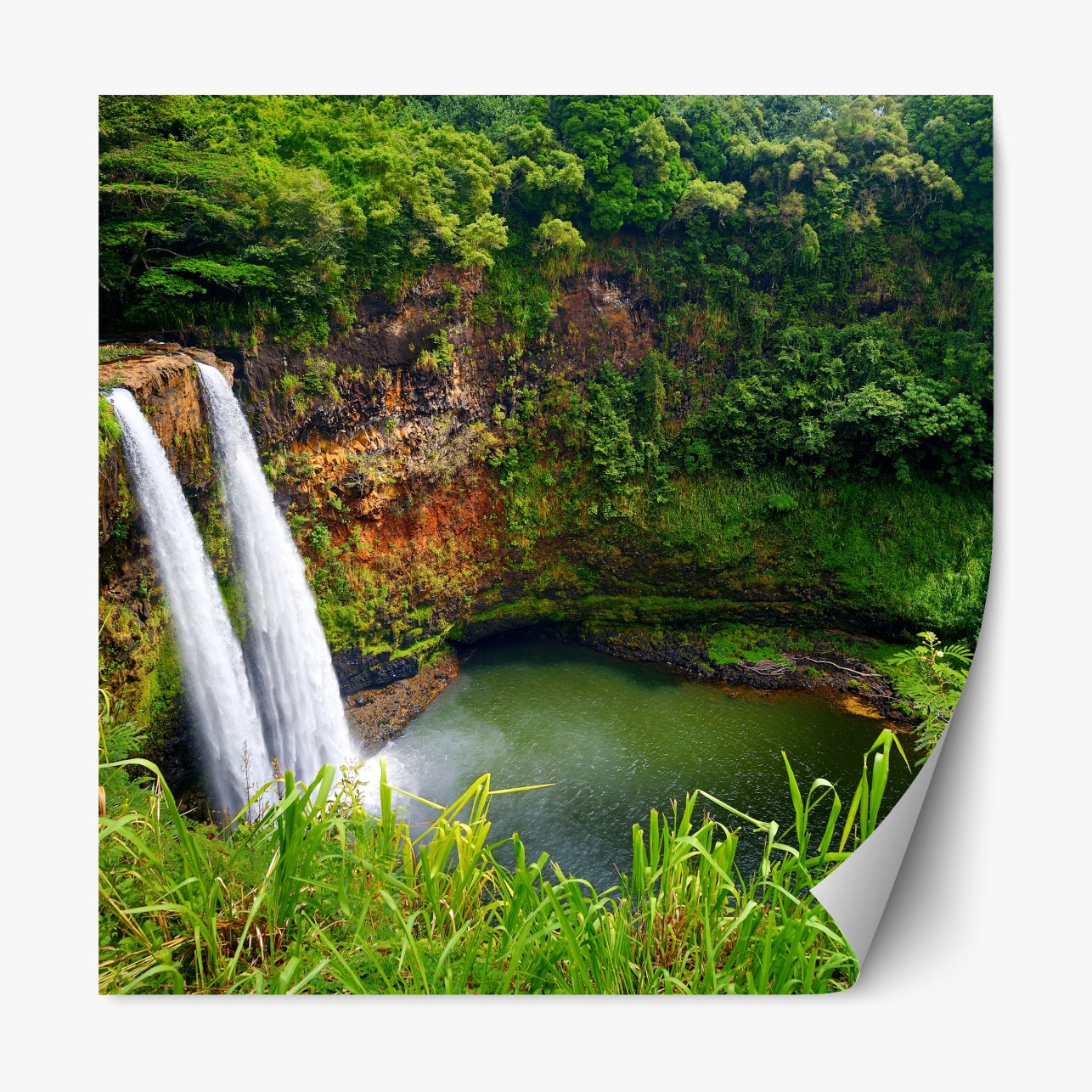Naklejka repozycjonowalna Podwójny wodospad w bujnym zielonym lesie
