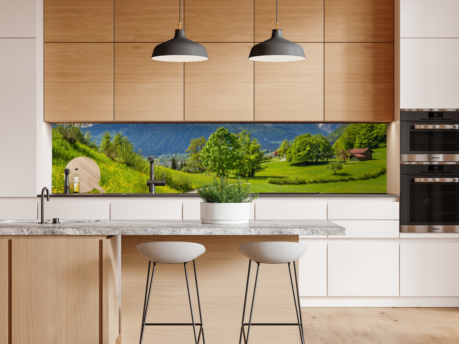 Naklejka repozycjonowalna Alpejska wiosenna łąka z ośnieżonymi szczytami