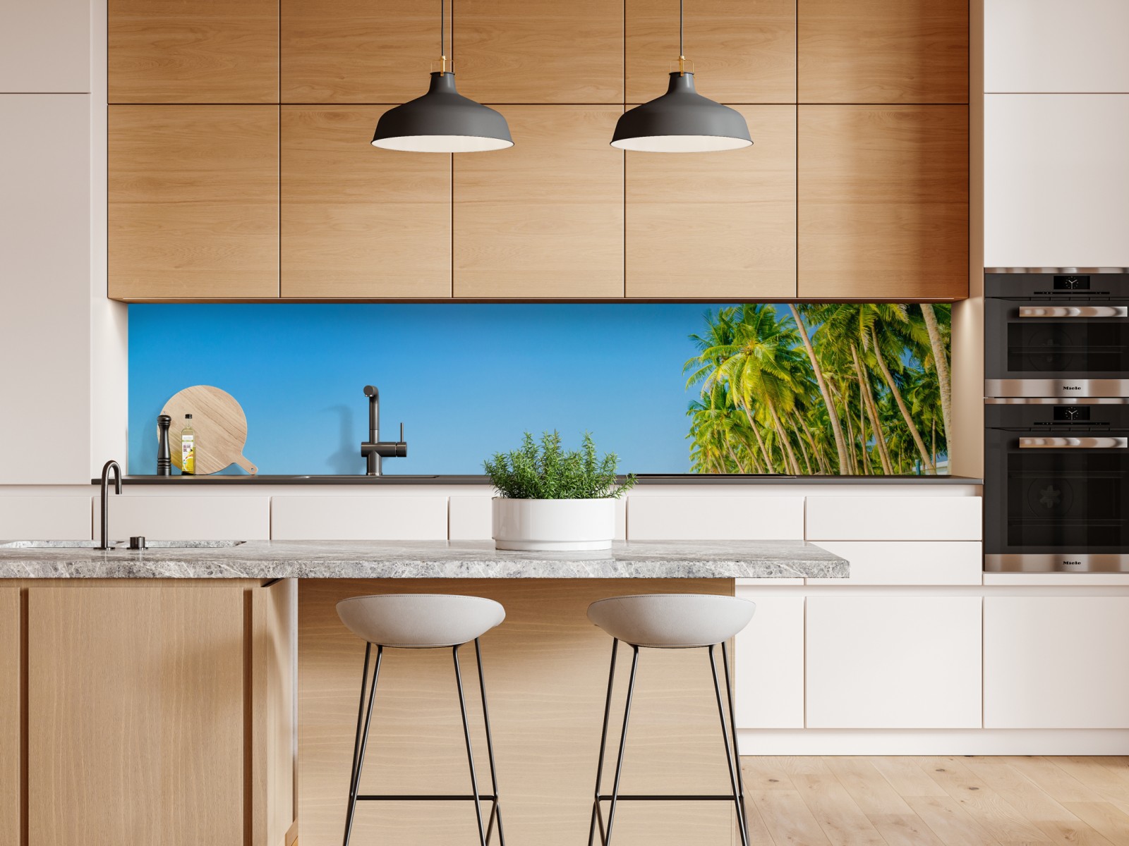 Naklejka repozycjonowalna Tropikalna plaża z palmami