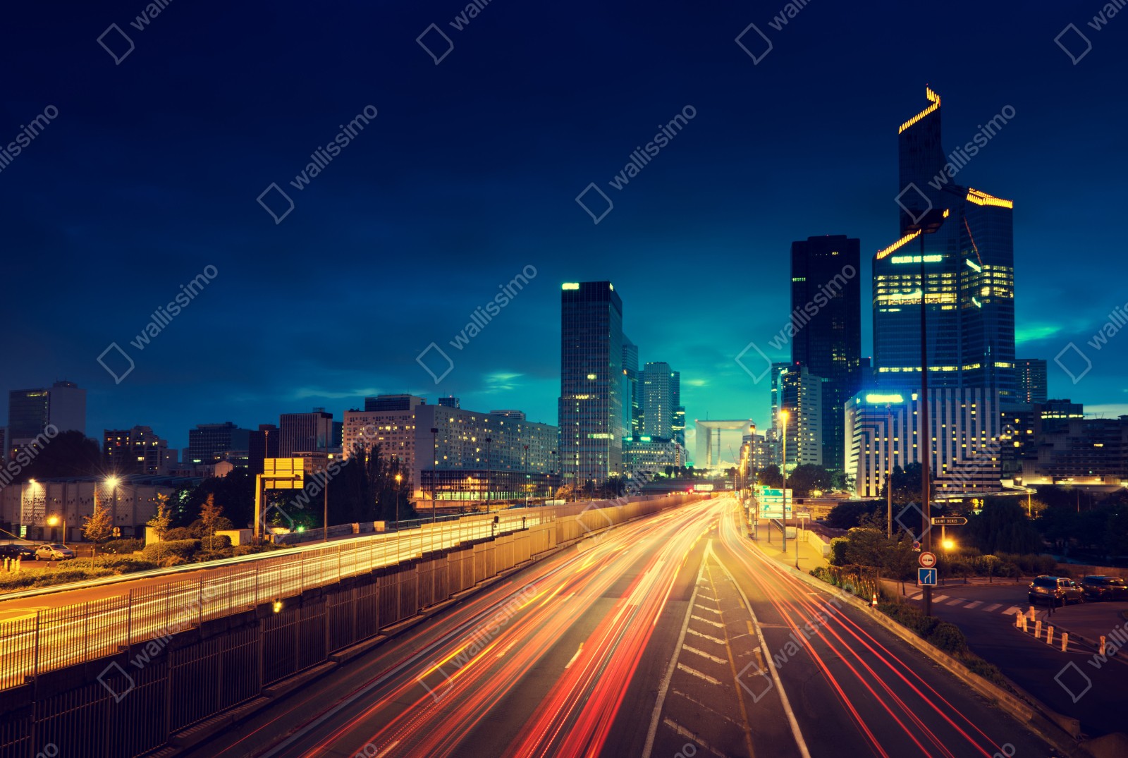 Naklejka repozycjonowalna La Défense panorama miasta o zmierzchu