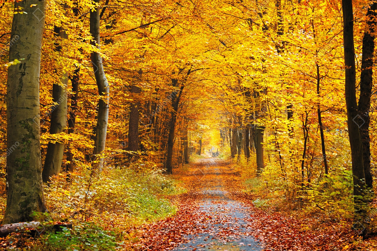 Naklejka repozycjonowalna Złota ścieżka w jesiennym lesie