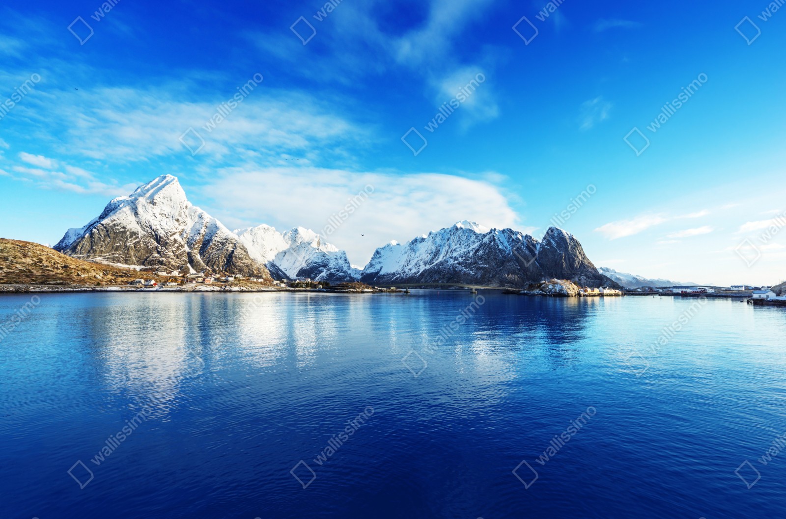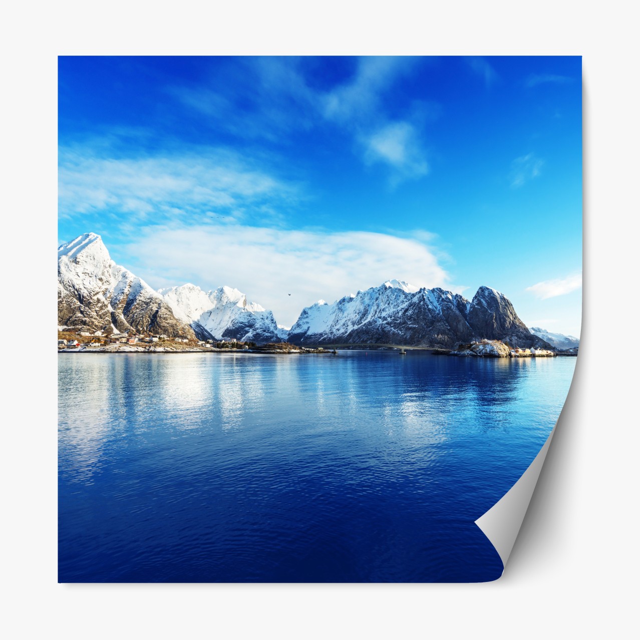 Naklejka repozycjonowalna Spokojny zimowy fiord w Reine, Lofoty